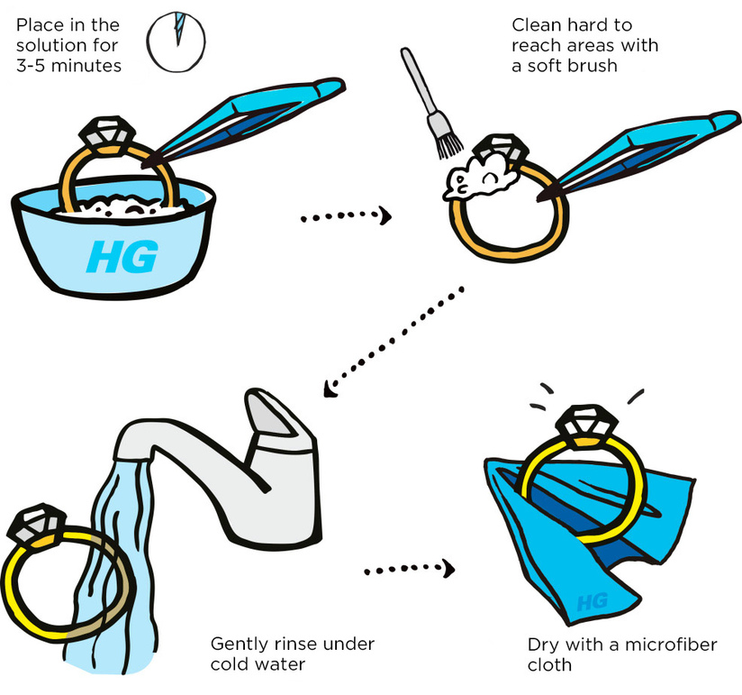 Jewelry with diamonds. Cut diamonds (diamonds) can be cleaned with a soft brush using a 1: 6 ammonia / water solution. Ammonia (ammonia) is an inexpensive product that can be purchased at any pharmacy. Jewelry should be cleaned and checked every six months and it is advisable to seek the help of a professional jeweler.