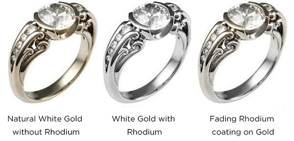 White gold is plated with rhodium, which gives it a unique brilliance and elegance, the white that many people like so much. Without rhodium plating, white gold is yellow due to the presence of copper. This coating requires regular attention as it suffers from wear and tear. A simple and inexpensive recoating process every 12-18 months will restore your jewelry to its original appearance. If rhodium-plated items need cleaning, they must be rinsed in warm water, then wiped dry and polished with a jewelry cloth. Do not clean jewelry with ammonia or abrasive products (such as toothpaste).