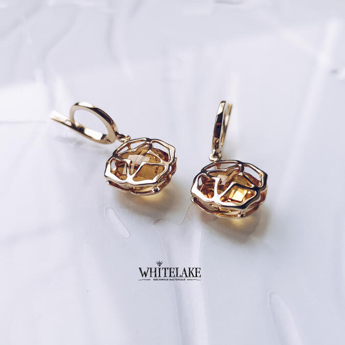 Стильные серьги с натуральными цитринами