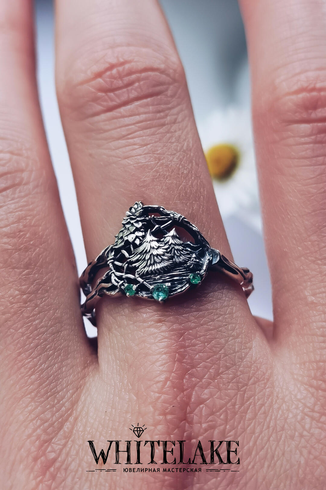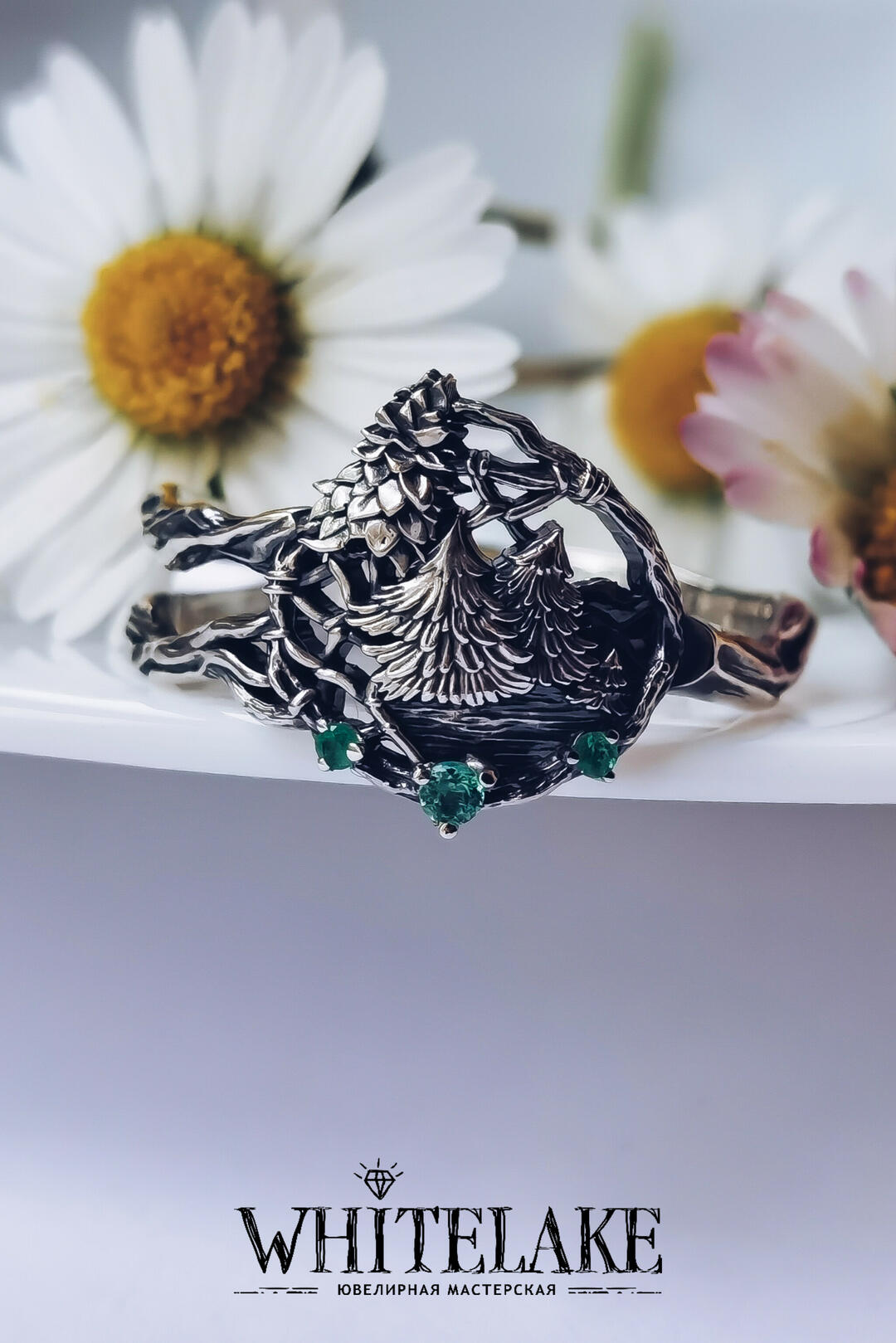 WHITELAKE Авторское кольцо «Ловец снов» с изумрудами Авторское кольцо «Ловец снов» с изумрудами на заказ по своим и нашим эскизам. Изготовление ювелирных украшений из золота и других металлов с доставкой по всей России. Ювелирная студия Whitelake: каталог и цены на сайте.
