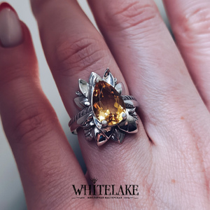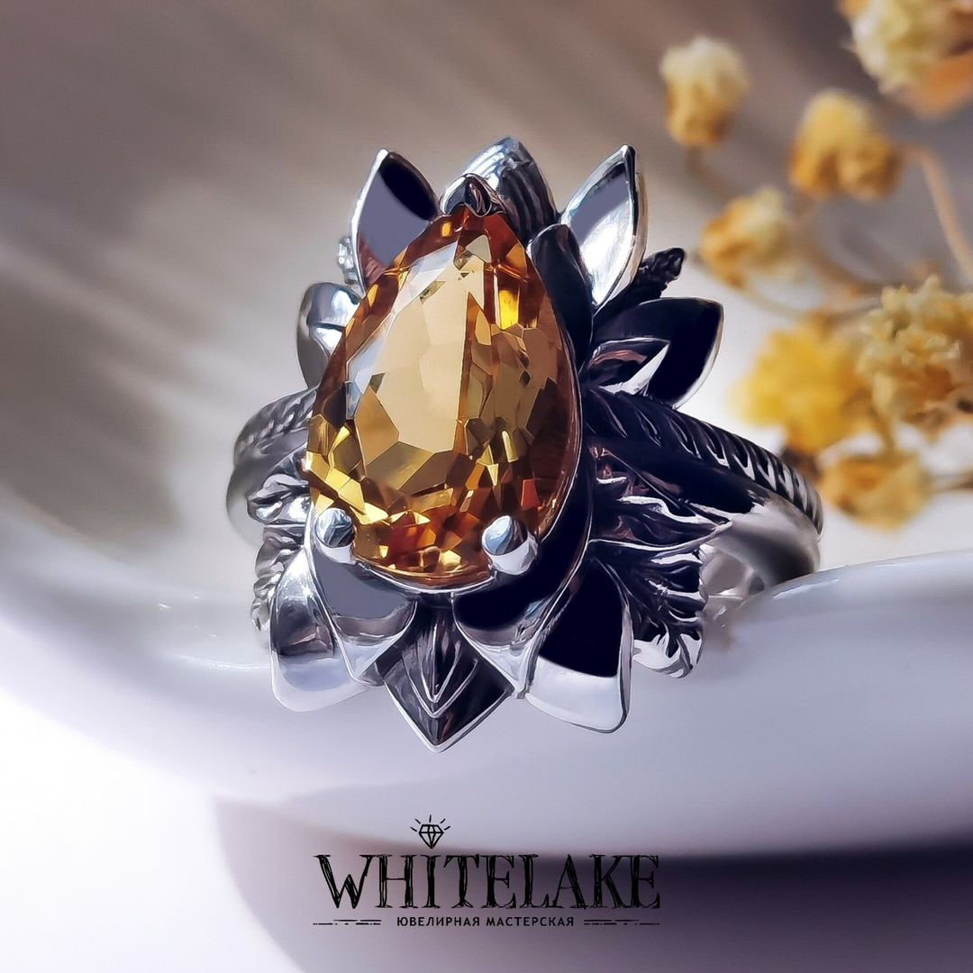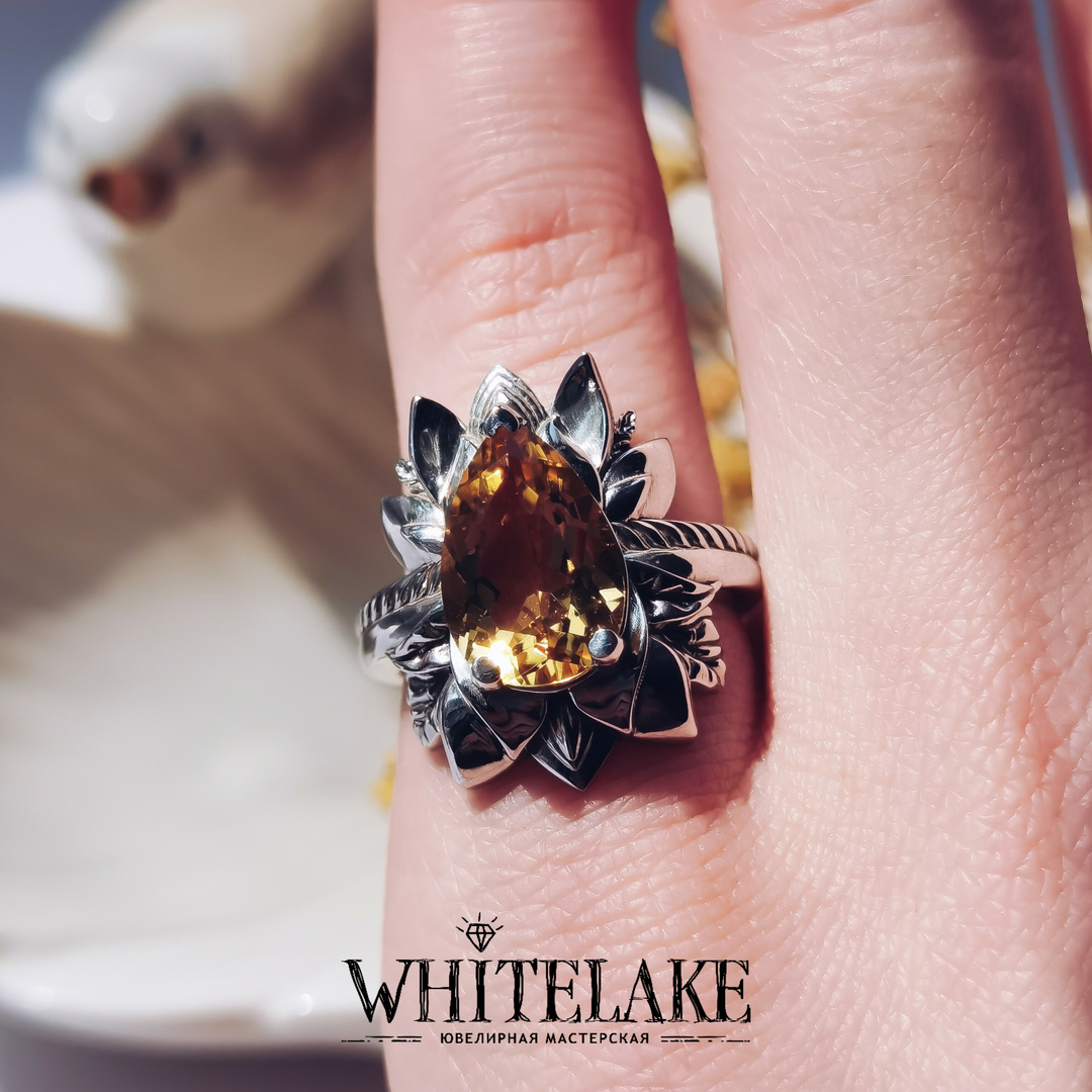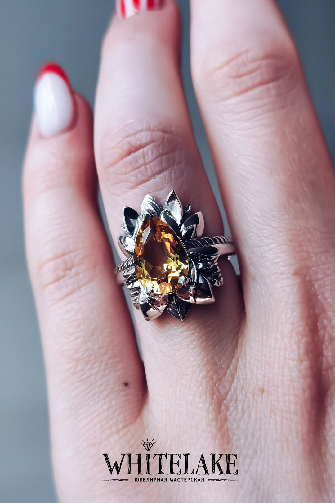 Дизайнерское кольцо «Лотос» с цитрином огранки груша