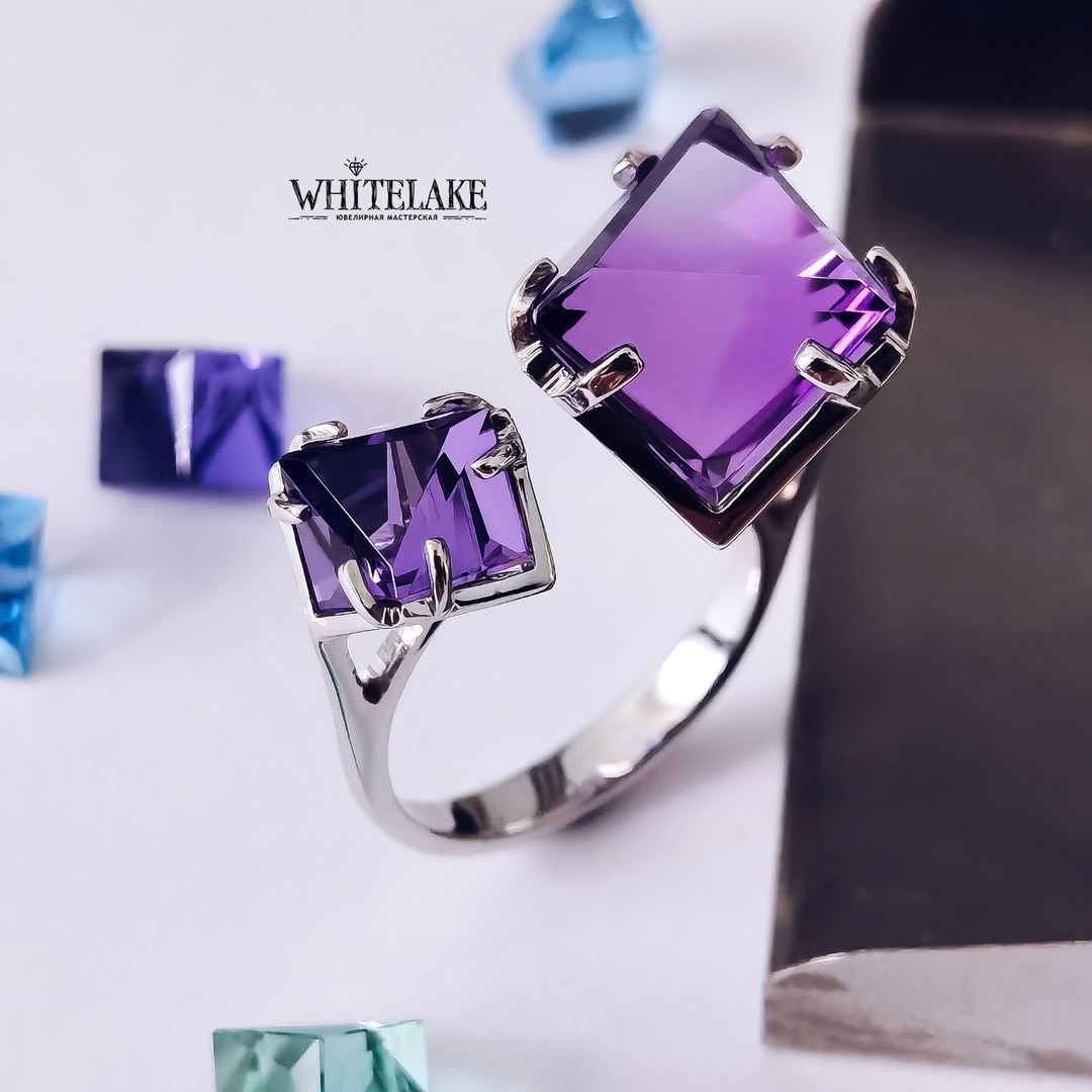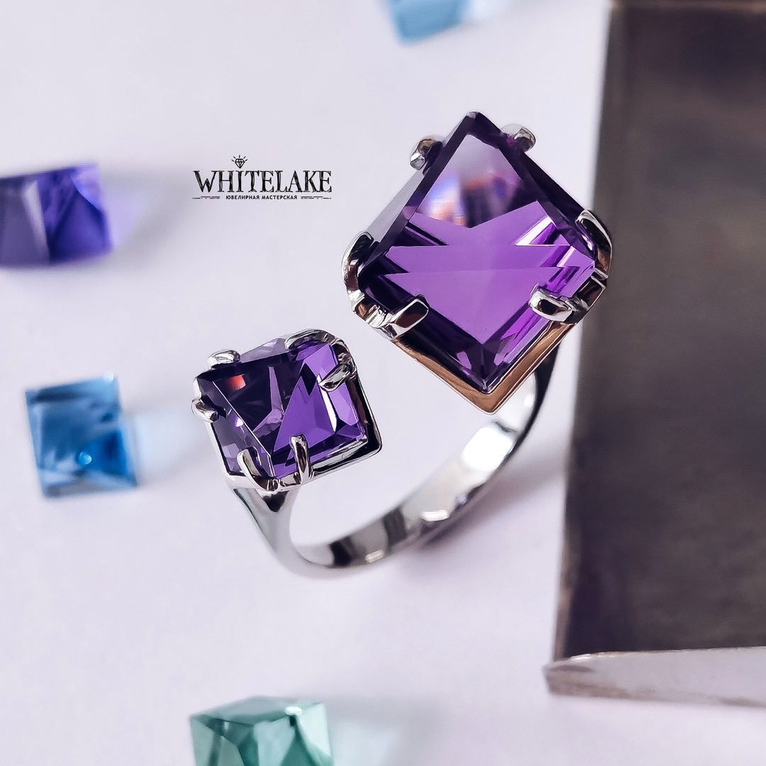Двойное кольцо с аметистами Айсберг