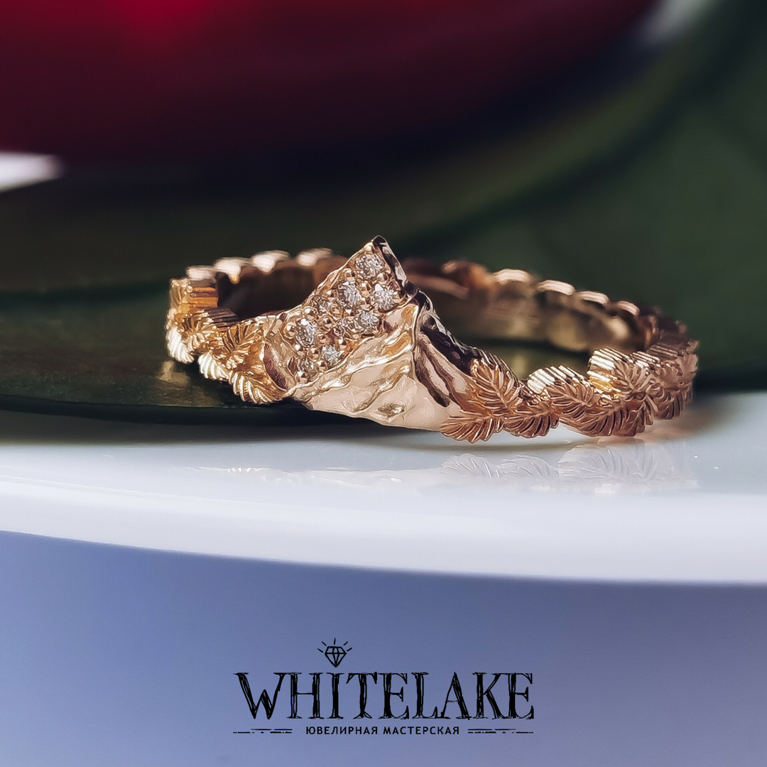 WHITELAKE Кольцо «Эльбрус и еловый лес» Кольцо «Эльбрус и еловый лес» на заказ по своим и нашим эскизам. Изготовление ювелирных украшений из золота и других металлов с доставкой по всей России. Ювелирная студия Whitelake: каталог и цены на сайте.