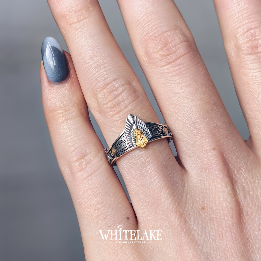 - выбрать вариант с чернением или без, а также с позолотой или без в нужных вам местах кольца