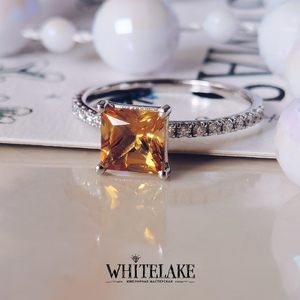 Кольцо с цитрином огранки принцесса