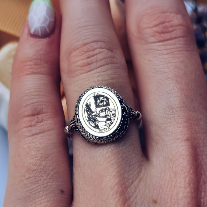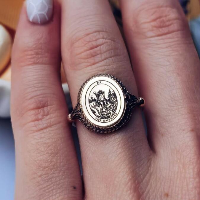 - выбрать вариант с чернением или без, а также с позолотой или без в нужных вам местах кольца