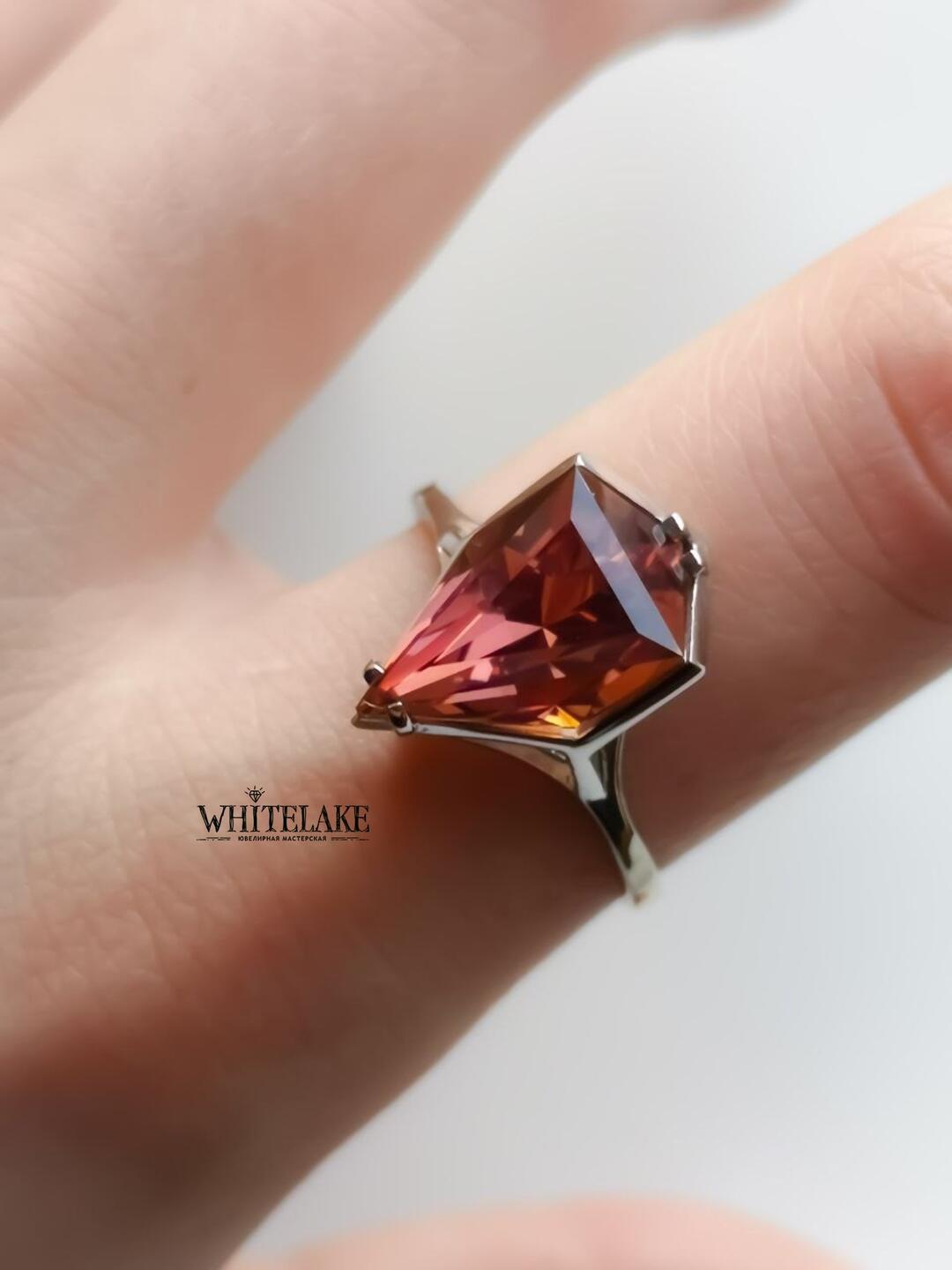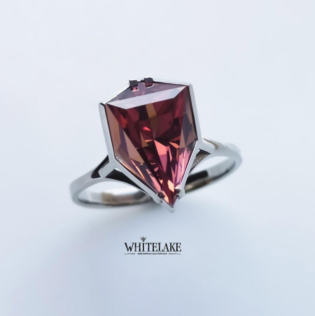 Кольцо с султанитом груша огранки «Айсберг»