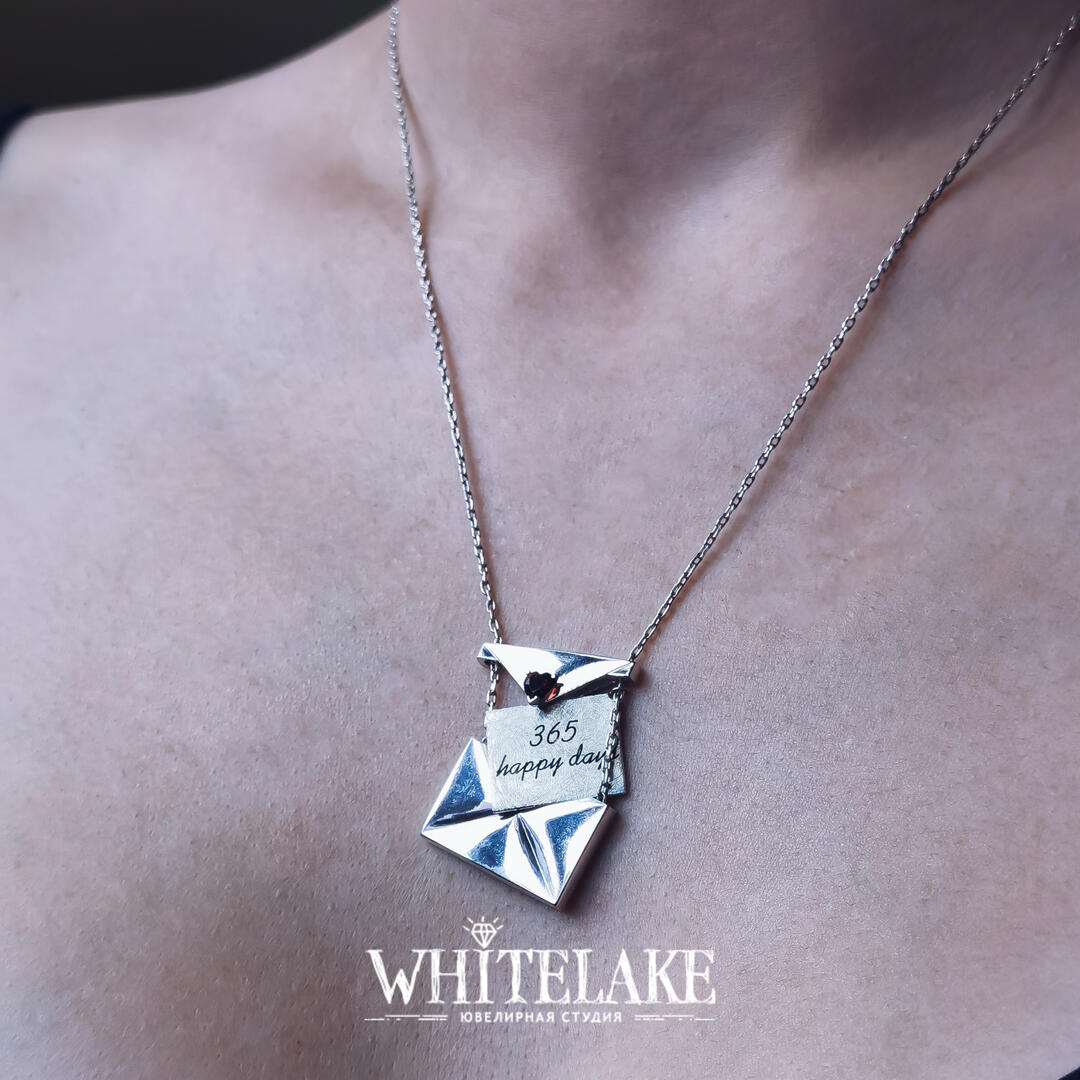 WHITELAKE Колье-трансформер «Конверт с посланием» Колье-трансформер «Конверт с посланием» - заказать эксклюзивные ювелирные украшения в ювелирной студии Whitelake с доставкой по России. Создаем уникальные ювелирные украшения по своим и вашим эскизам из золота, платины и серебра с драгоценными и полудрагоценными камнями и гравировкой.