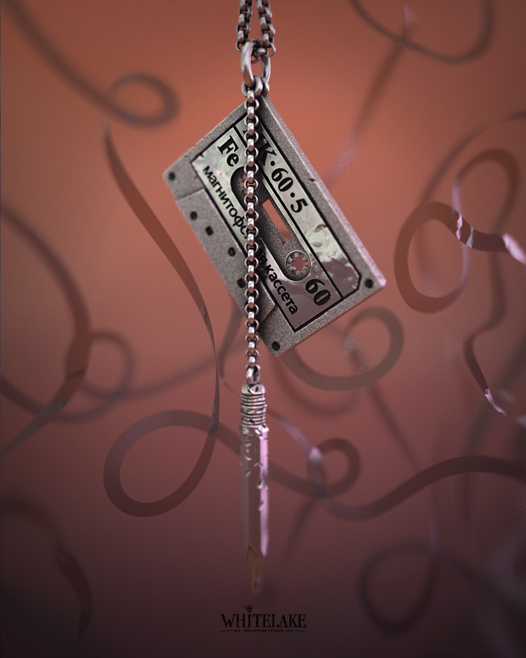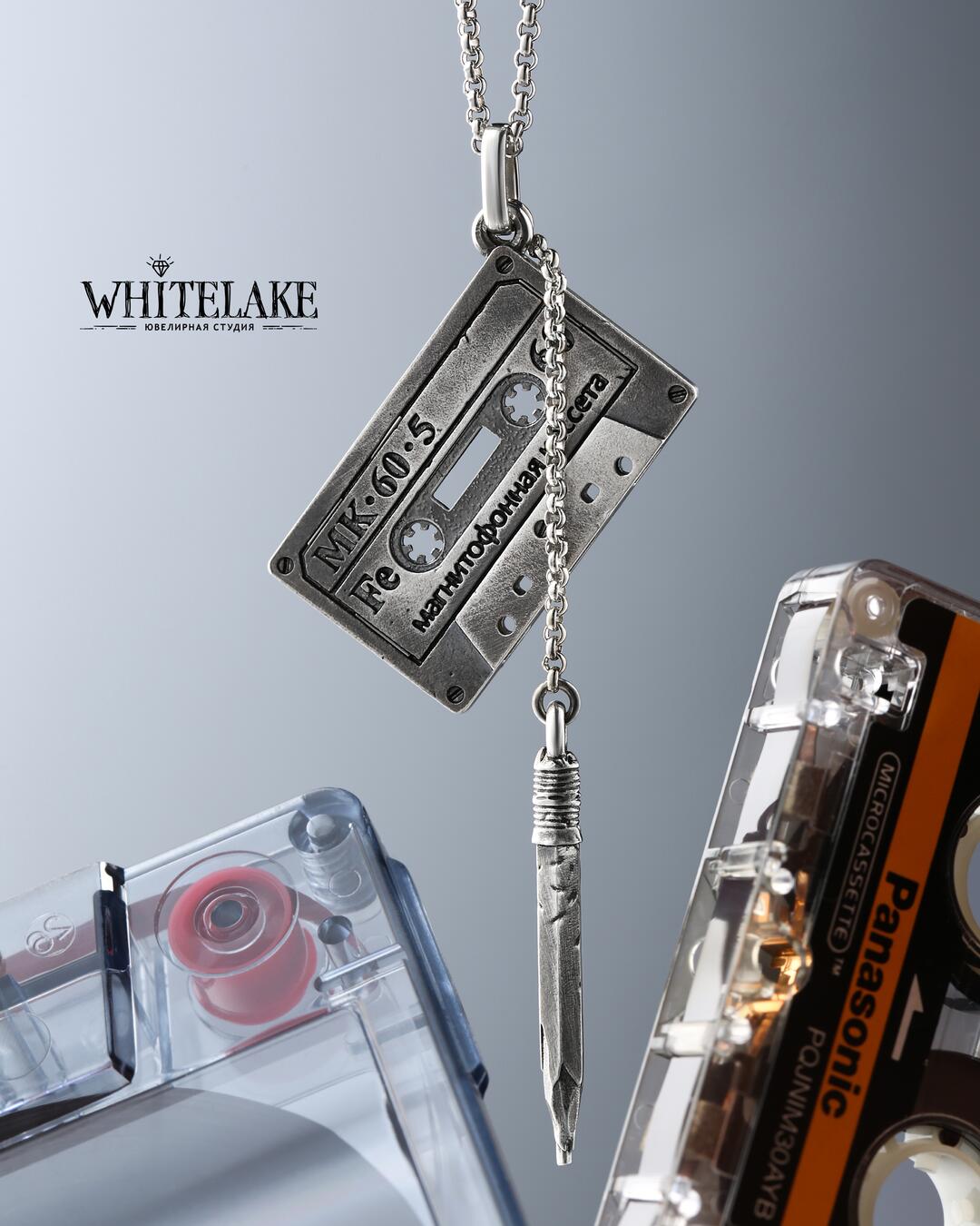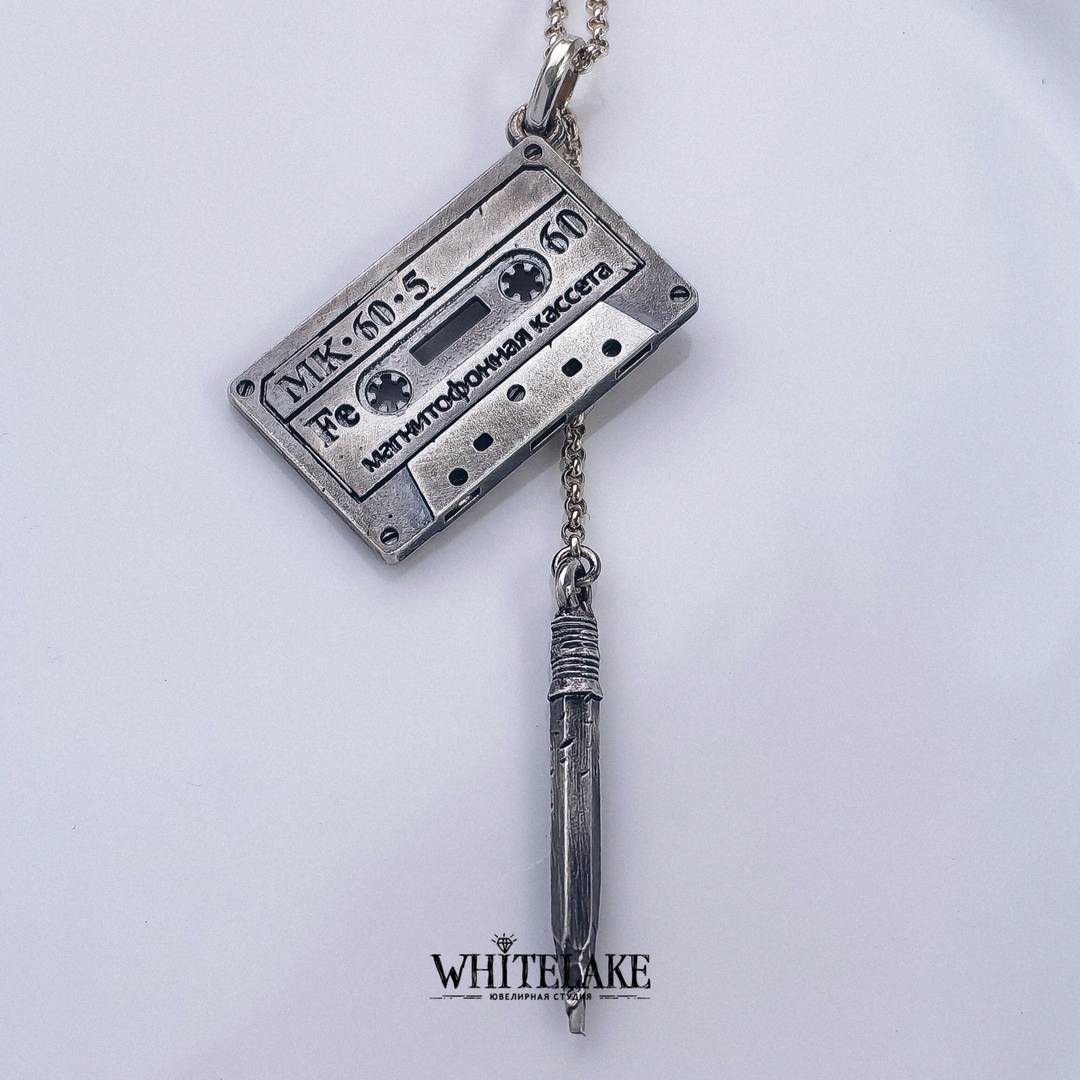 Pendant «Cassette tape and pencil»