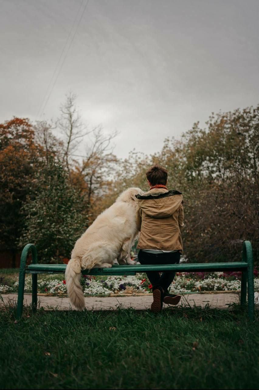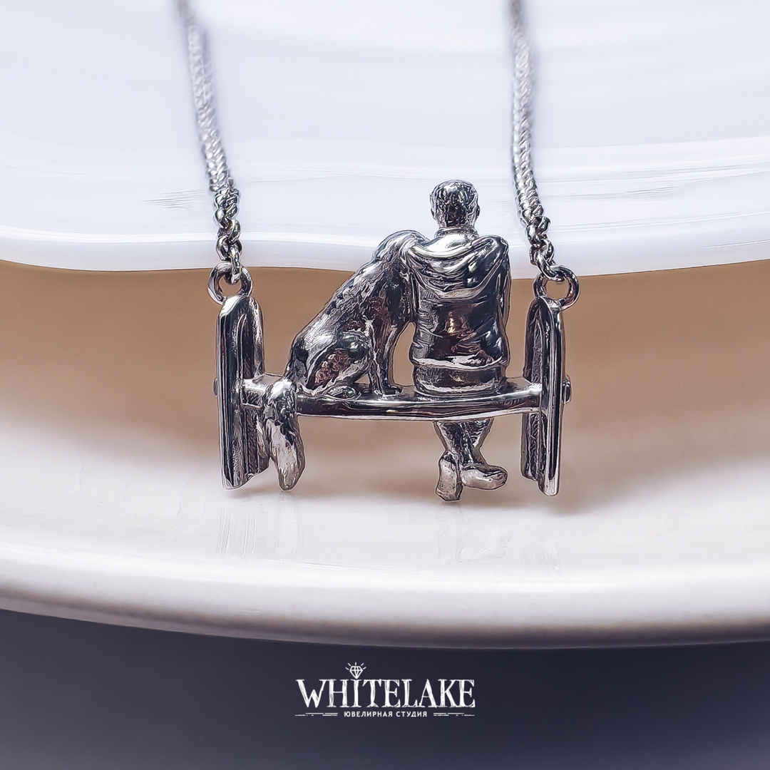 Кулон на память «Собака с хозяйкой на скамейке»