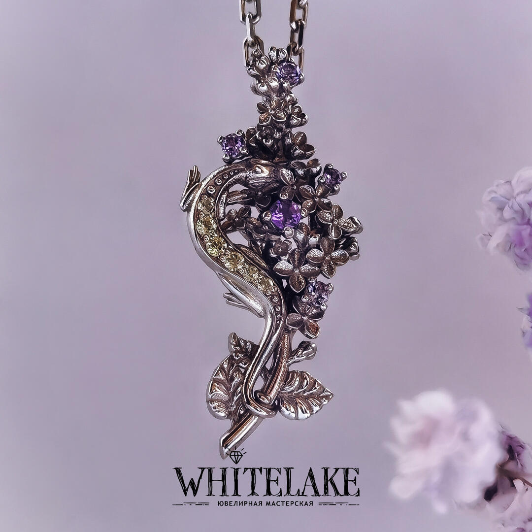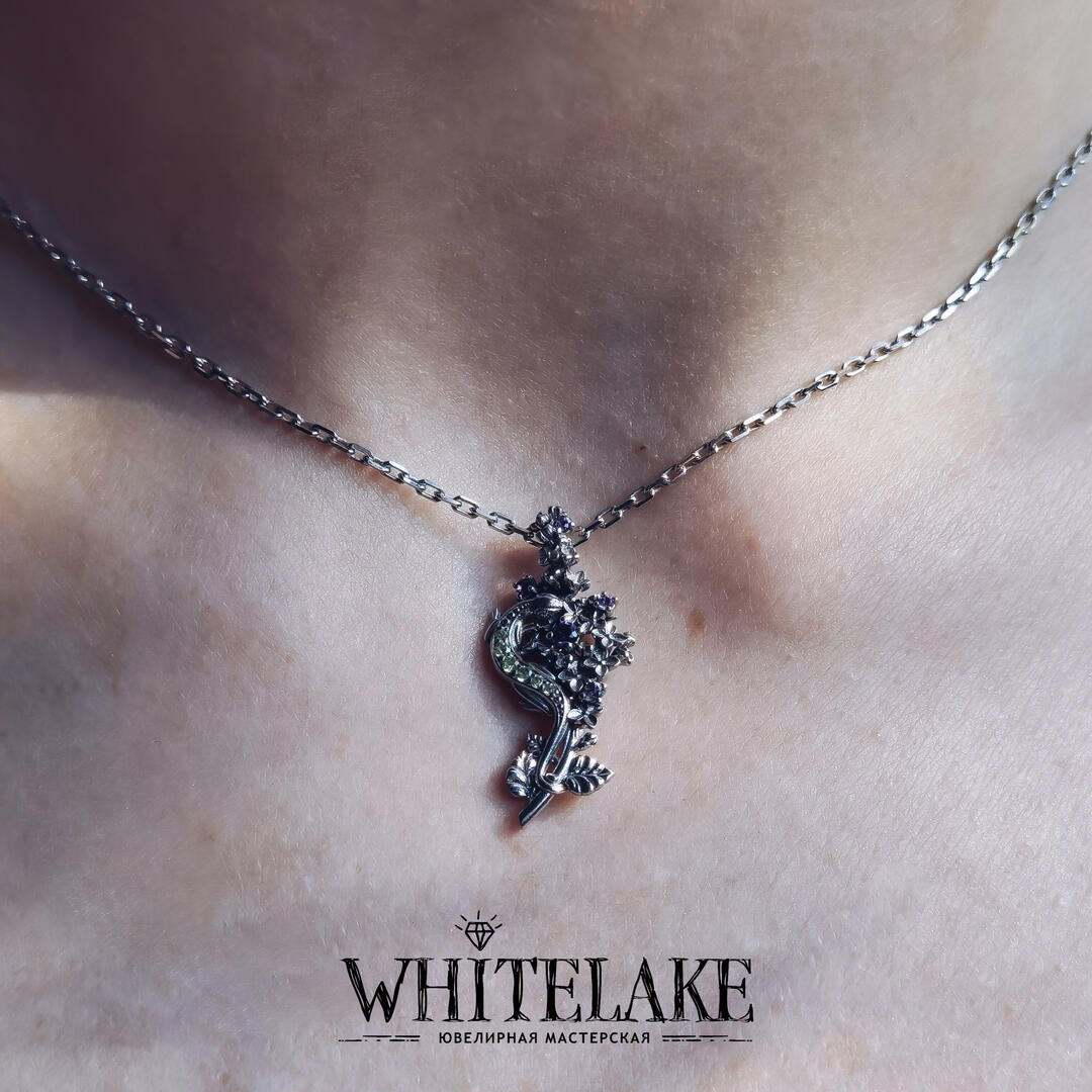 WHITELAKE Кулон «Ящерица в сирени» Кулон «Ящерица в цветах» - заказать эксклюзивные ювелирные украшения в ювелирной студии Whitelake с доставкой по России. Создаем уникальные ювелирные украшения по своим и вашим эскизам из золота, платины и серебра с драгоценными и полудрагоценными камнями и гравировкой.