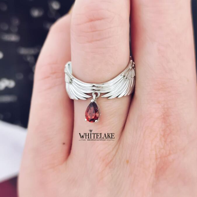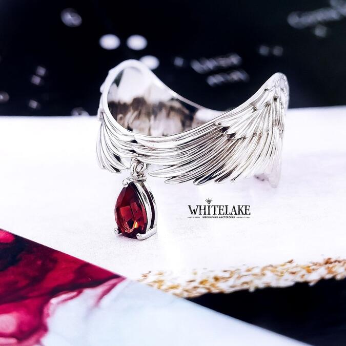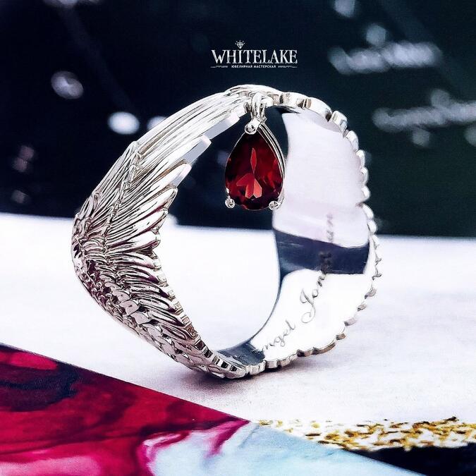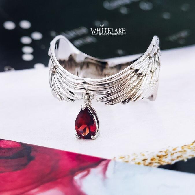 Кольцо «Крылья ангела» с гранатом