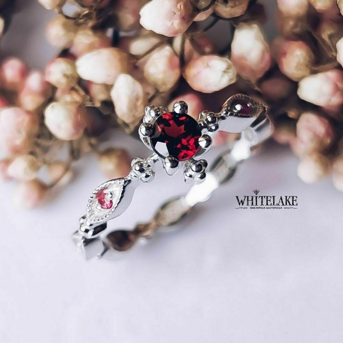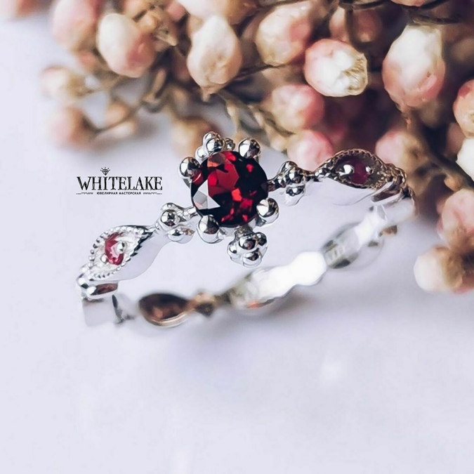 Необычное кольцо с гранатом