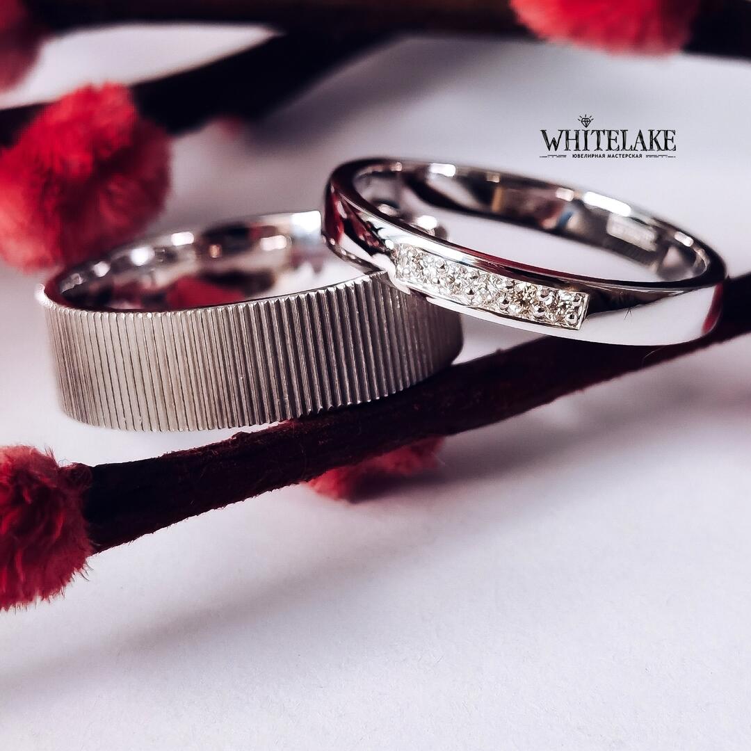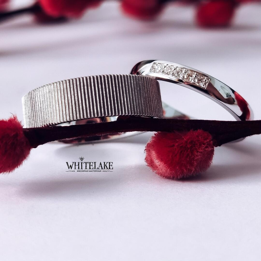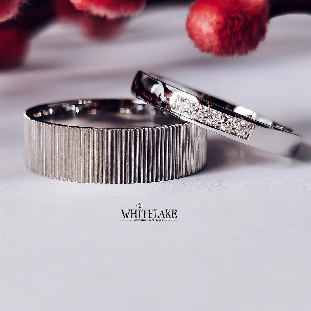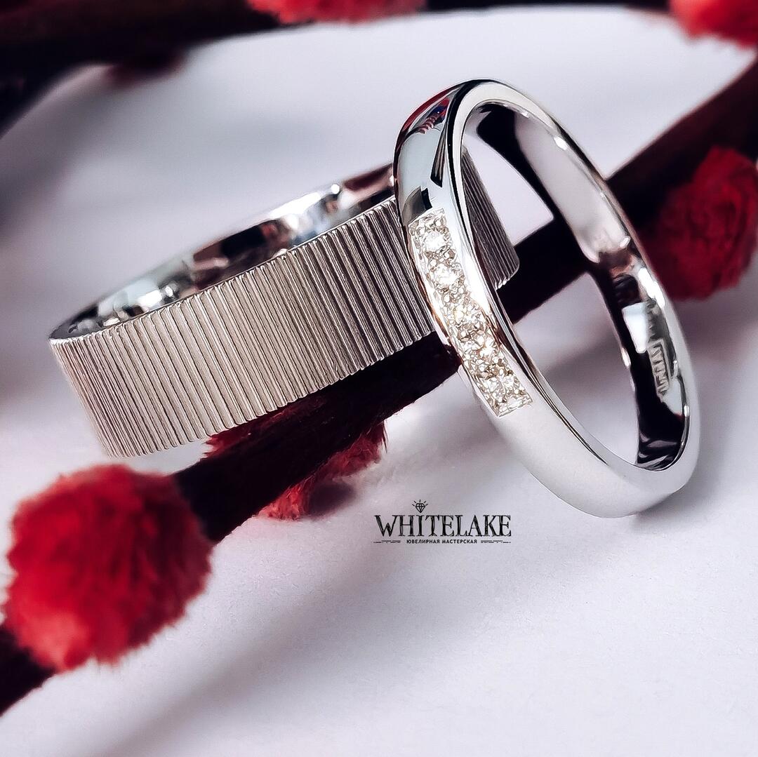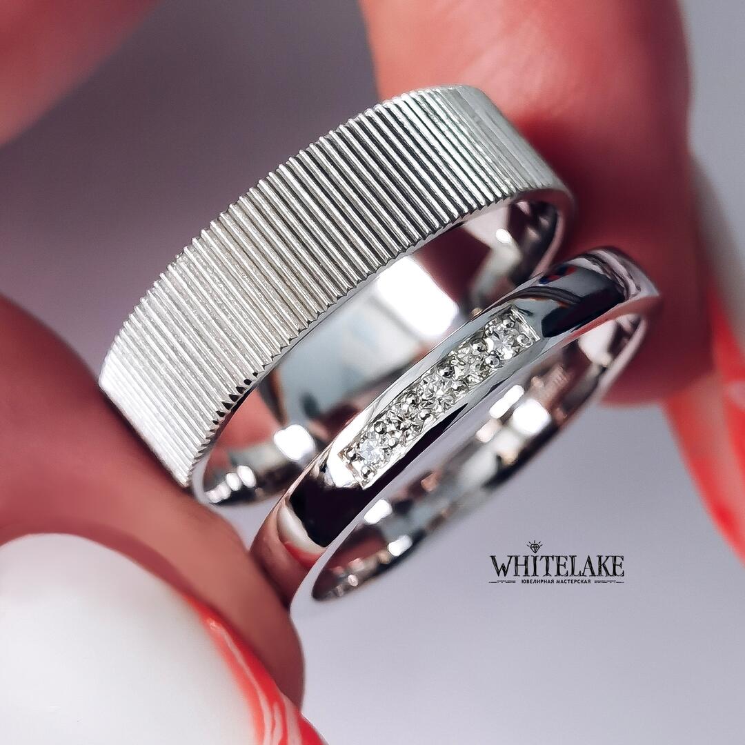- Авторские обручальные кольца из белого золота с бриллиантами