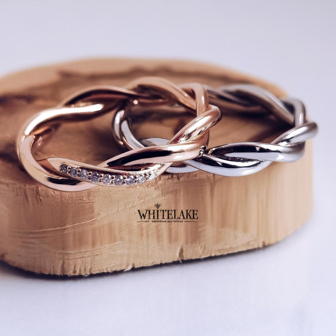 - Вы можете выбрать разный металл для каждого кольца. Например, мужское в серебре, женское в золоте;