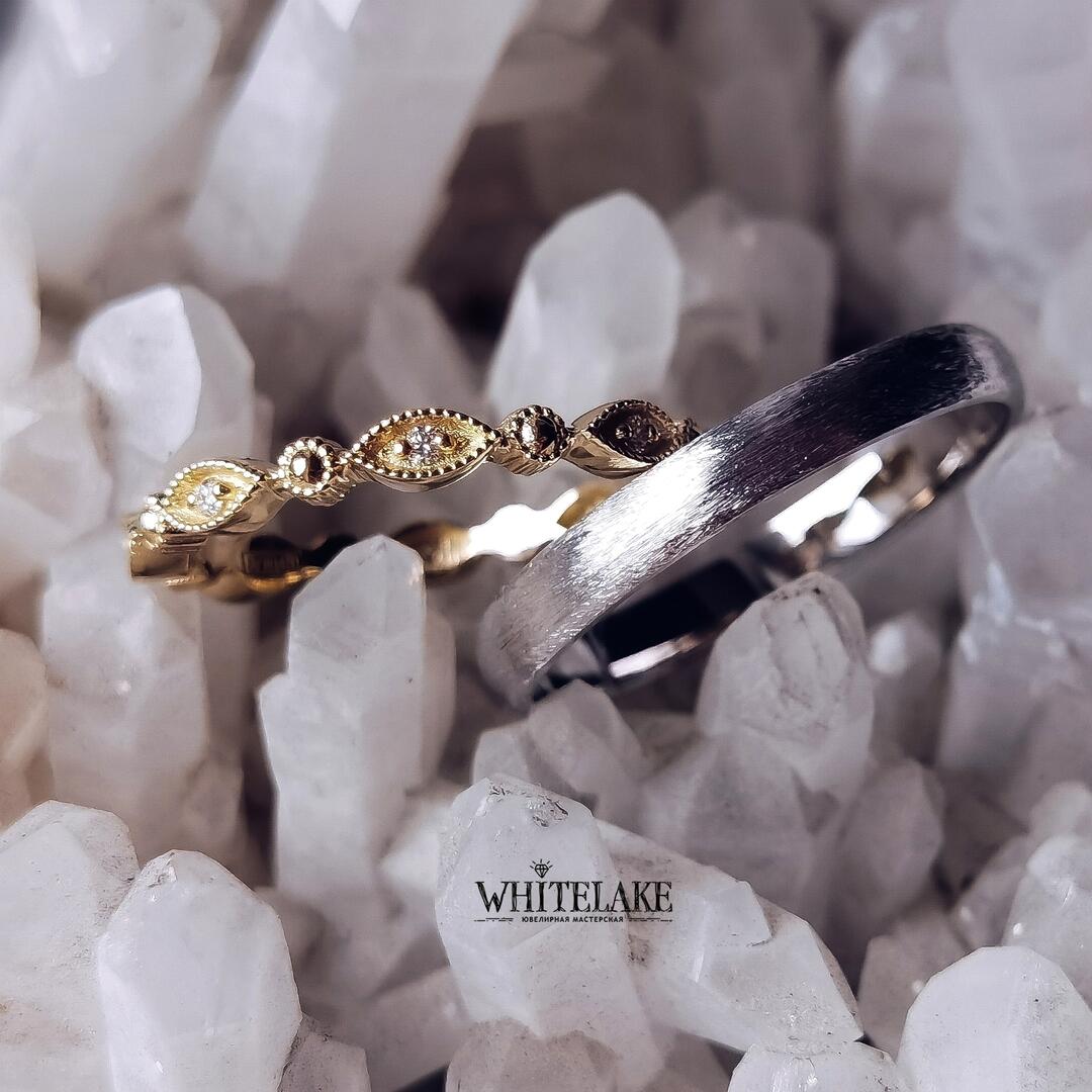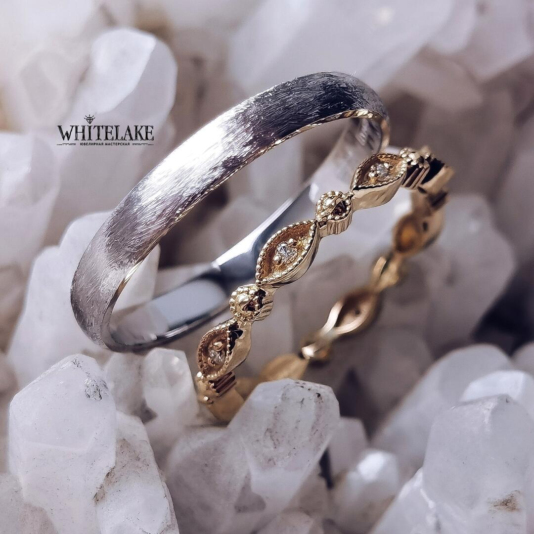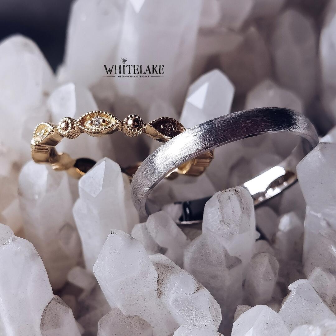 - Вы можете выбрать разный металл для каждого кольца. Например, мужское в серебре, женское в золоте;
