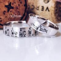 «Чин-чин» — традиционное выражение, которым заканчивают застольное пожелание счастья и здоровья. И хотя гравировки в виде бокалов, стаканов, рюмок и разной формы бутылок едва ли назовешь классическим способом украсить свадебные кольца, смотрится это невероятно оригинально, интересно и весело.