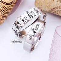 В карусели вы можете видеть примеры колец с гравировками, изготовленных по индивидуальным заказам. Наши художники нарисуют эскиз будущих украшений, а ювелиры изготовят их из того материала, который вы выберете: это может быть серебро, белое, желтое, красное золото или платина.