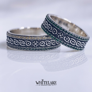 WHITELAKE Обручальные кольца с символом Свадебника Обручальные кольца с символом Свадебника - на заказ. Изготовление эксклюзивных колец в ювелирной студии Whitelake с доставкой по России. Создаем уникальные ювелирные украшения по своим и вашим эскизам из золота, платины и серебра с драгоценными и полудрагоценными камнями и гравировкой.