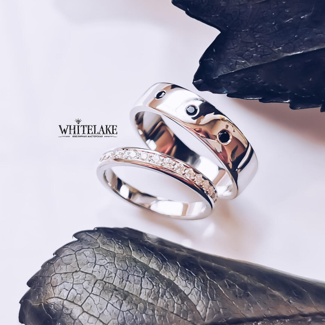 WHITELAKE Парные обручальные кольца с белыми и чёрными бриллиантами Парные обручальные кольца с белыми и чёрными бриллиантами - на заказ. Изготовление эксклюзивных колец в ювелирной студии Whitelake с доставкой по России. Создаем уникальные ювелирные украшения по своим и вашим эскизам из золота, платины и серебра с драгоценными и полудрагоценными камнями и гравировкой.