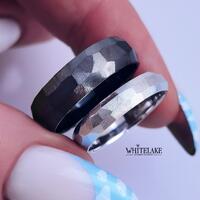Первое, что замечаешь, взглянув на них, – это особое сияние матовой, намеренно «затертой» поверхности. Благодаря множеству четких несимметричных граней свет падает на металл совершенно особым образом. Поэтому кольца кажутся будто бы собранными из множества разных кусочков, от светло-серебристого до практически черного. Эффект усиливается при движении, и смотрится это очень впечатляюще.