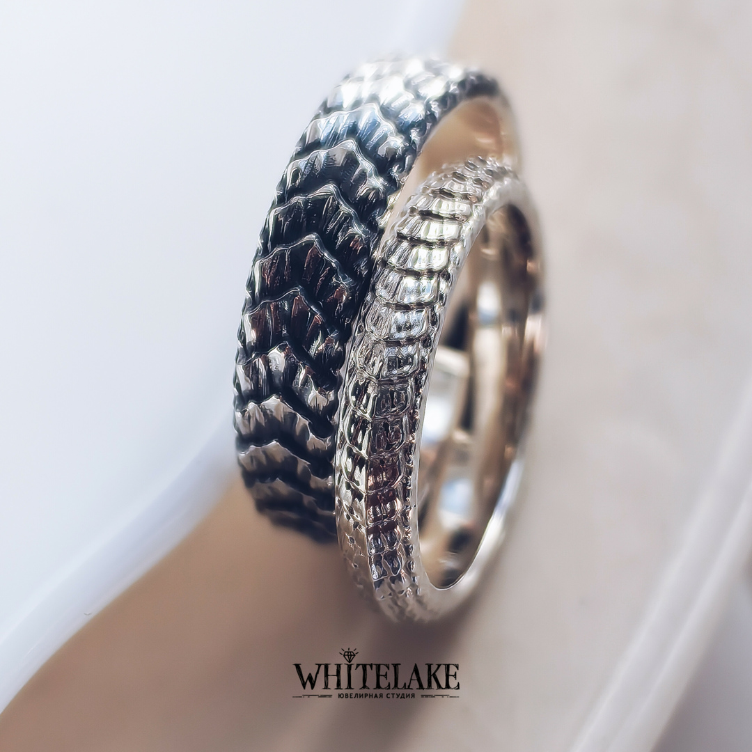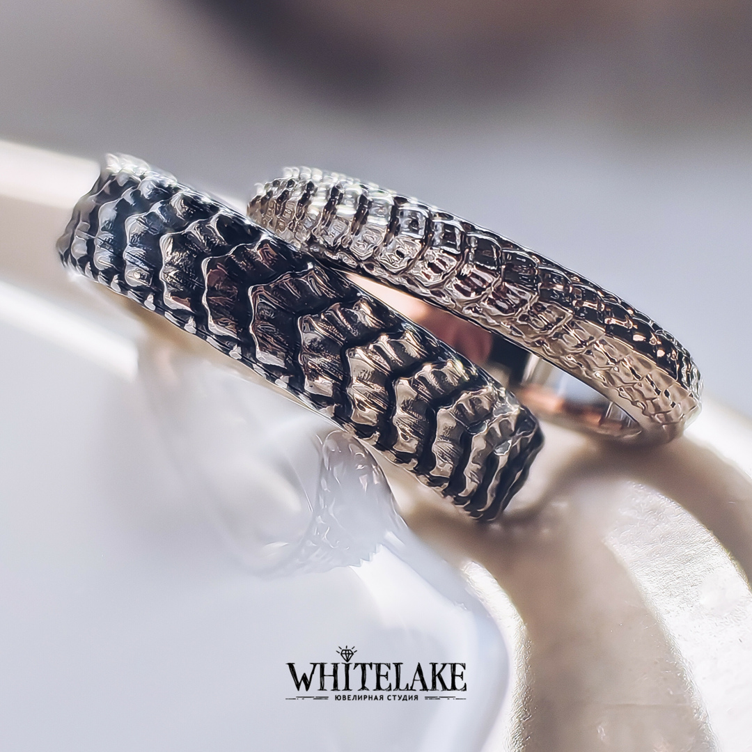 WHITELAKE Свадебные кольца «Чешуя дракона» Свадебные кольца «Чешуя дракона» - на заказ. Изготовление эксклюзивных колец в ювелирной студии Whitelake с доставкой по России. Создаем уникальные ювелирные украшения по своим и вашим эскизам из золота, платины и серебра с драгоценными и полудрагоценными камнями и гравировкой.