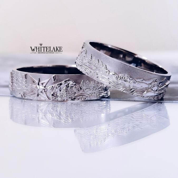 Кольца можно изготовить из серебра, платины или золота другого цвета. Также при желании можно изменить ширину или орнамент обоих или одного из колец, инкрустировать не только женское, но и мужское кольцо.
