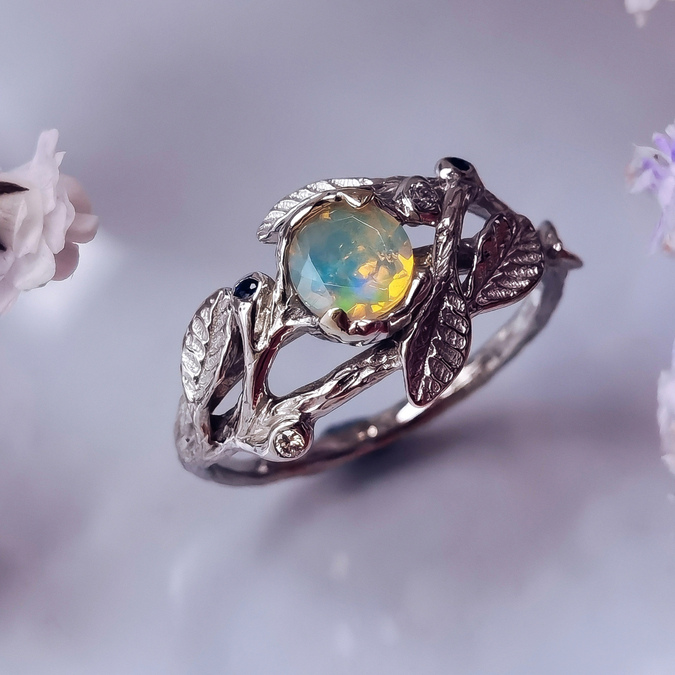 Помолвочное кольцо «Веточка» с опалом
