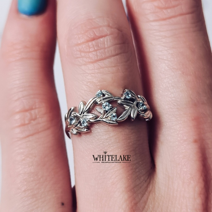 Помолвочное кольцо с изумрудом «Веточка с листочками»