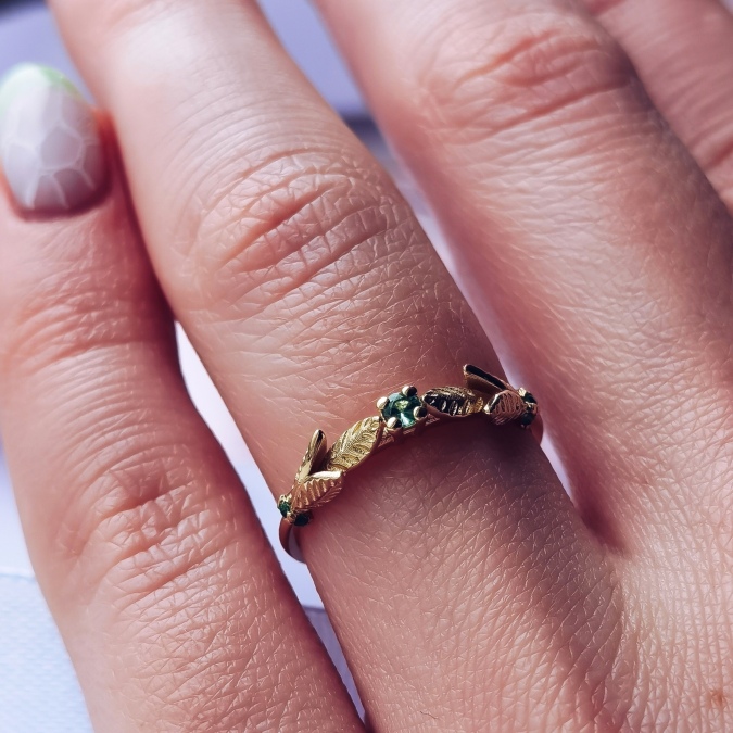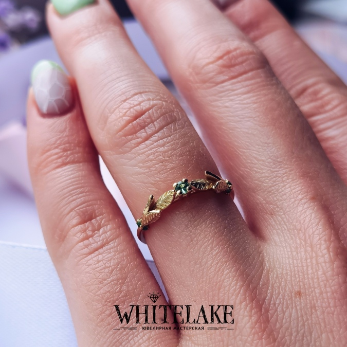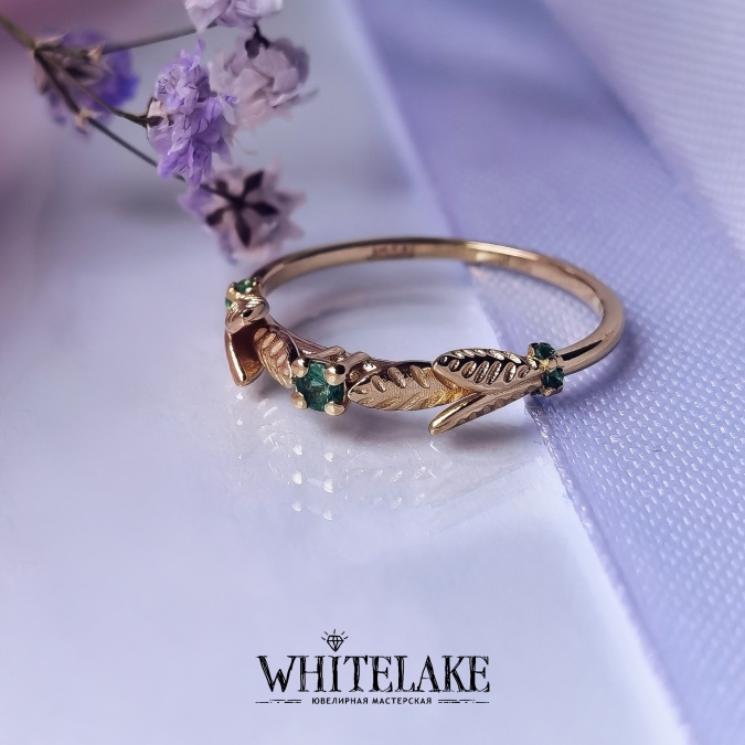 Помолвочное кольцо ручной работы Веточка с изумрудами