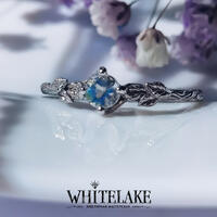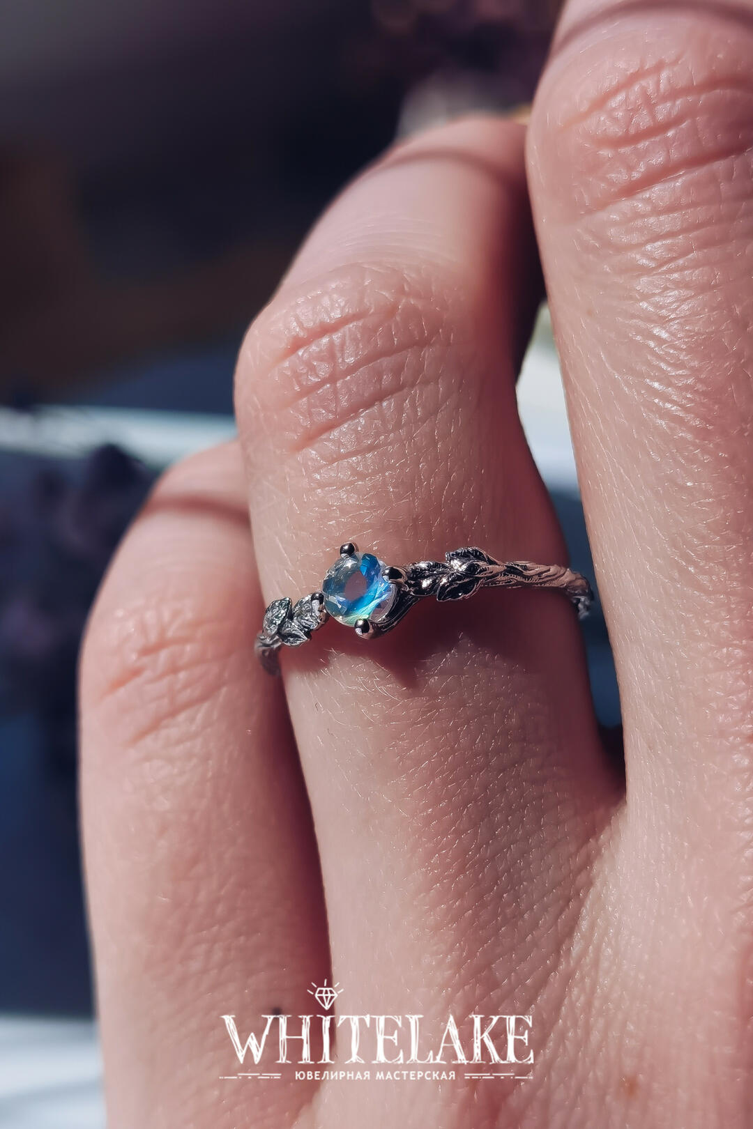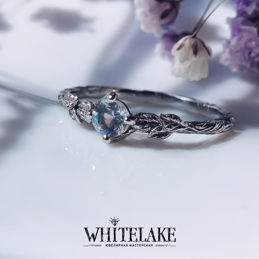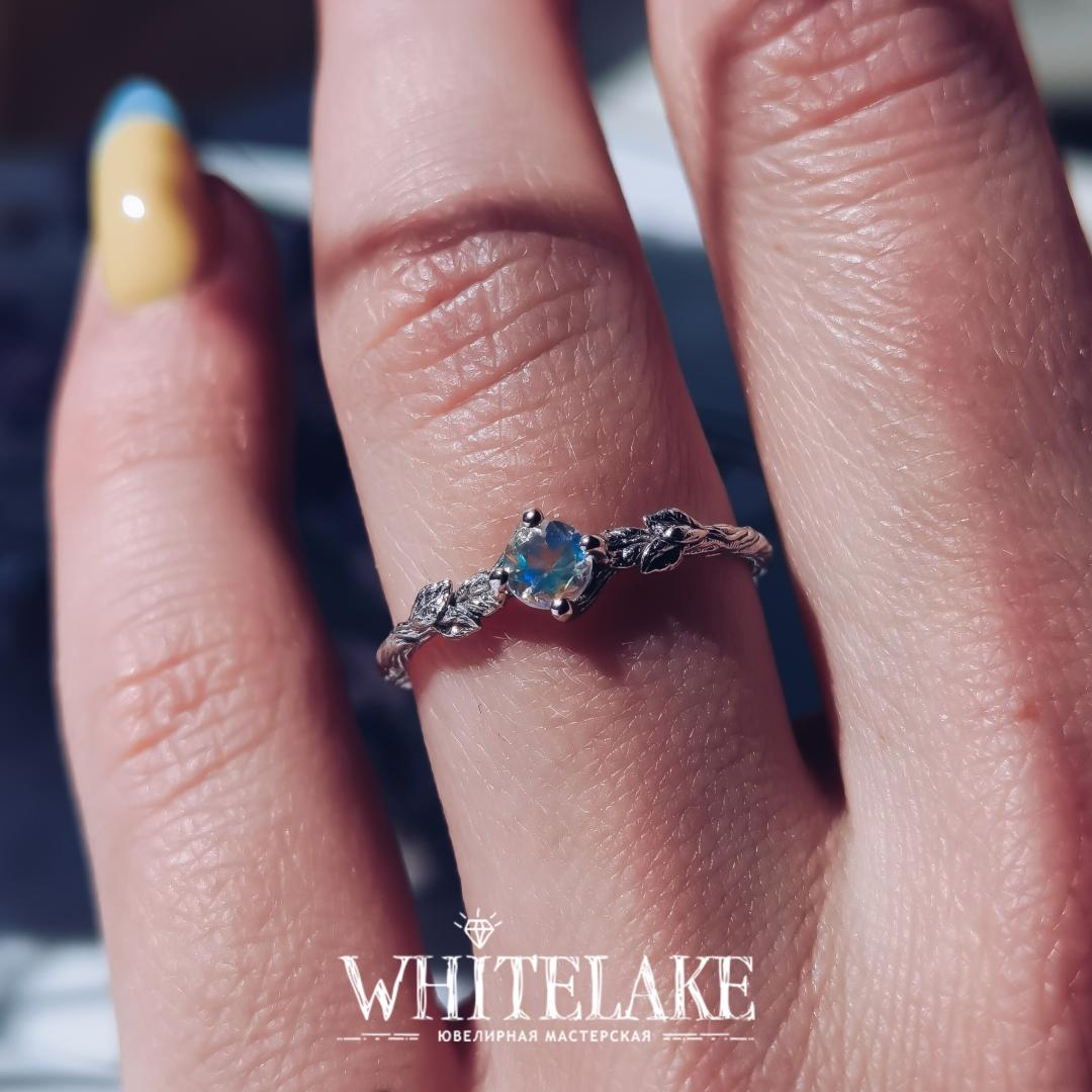 - Кольцо для помолвки в виде веточки с лунным камнем