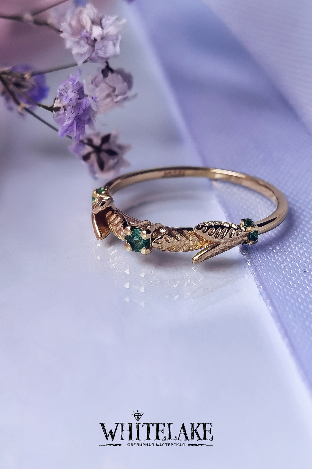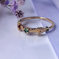 Кольцо для помолвки в жёлтом золоте с изумрудами «Веточка»