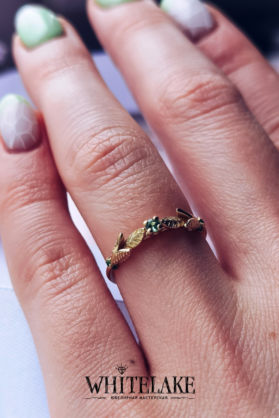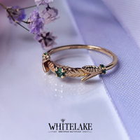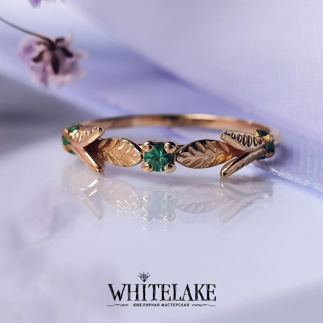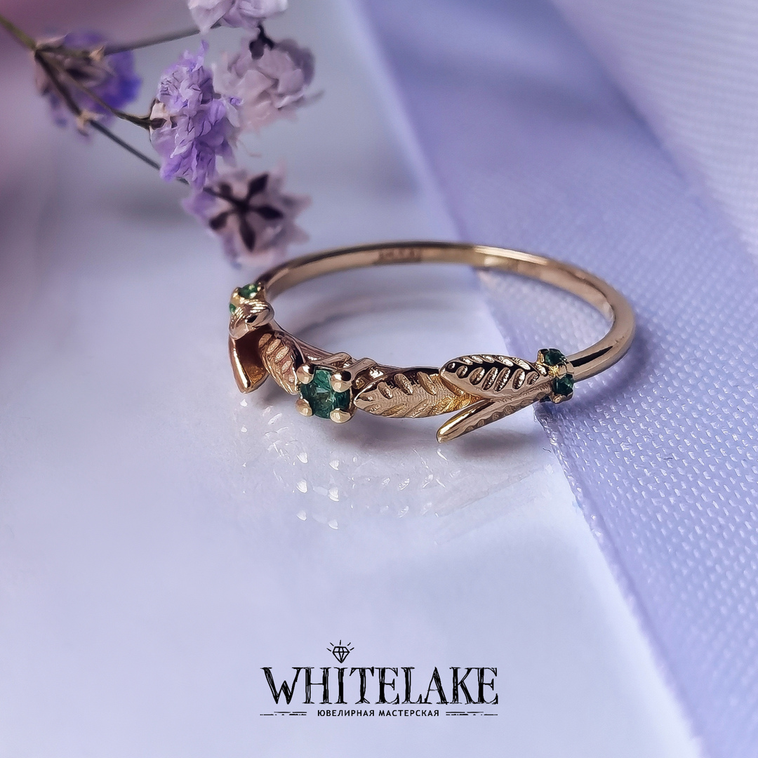 - Кольцо для помолвки в жёлтом золоте с изумрудами «Веточка»