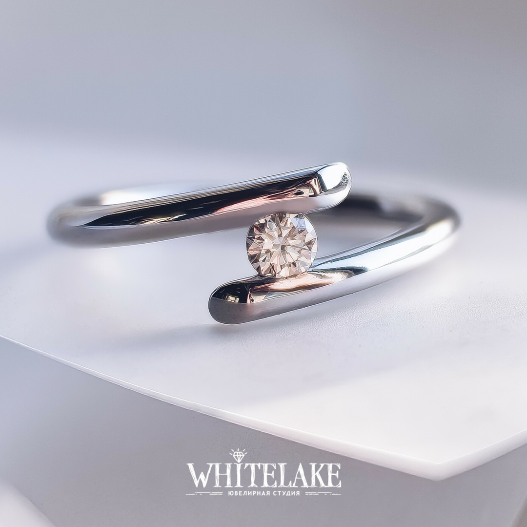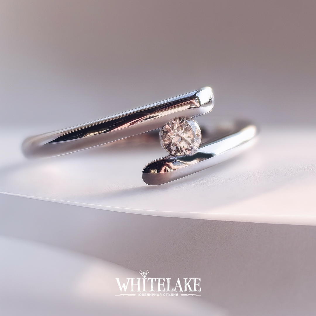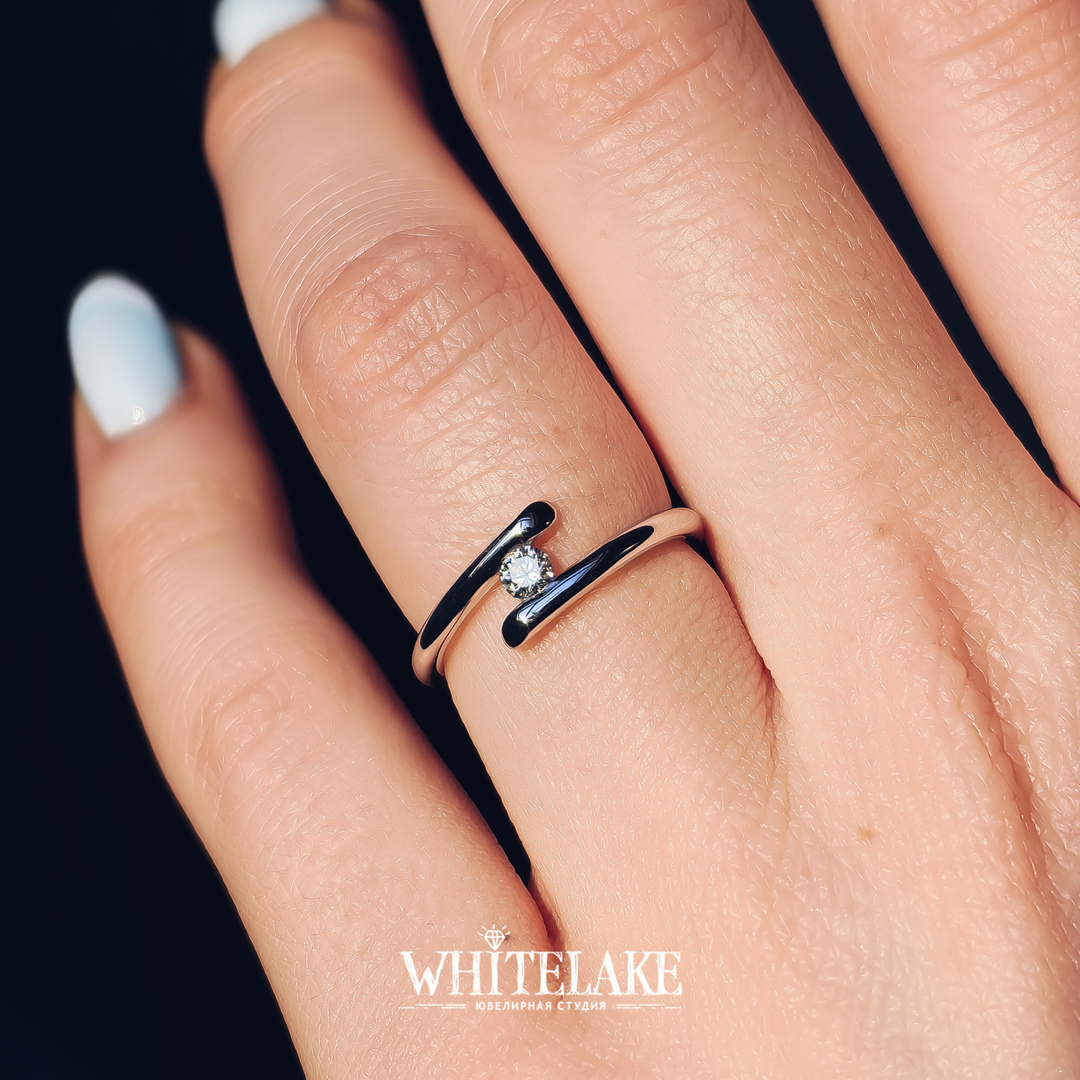 - Необычное помолвочное кольцо из белого золота с бриллиантом