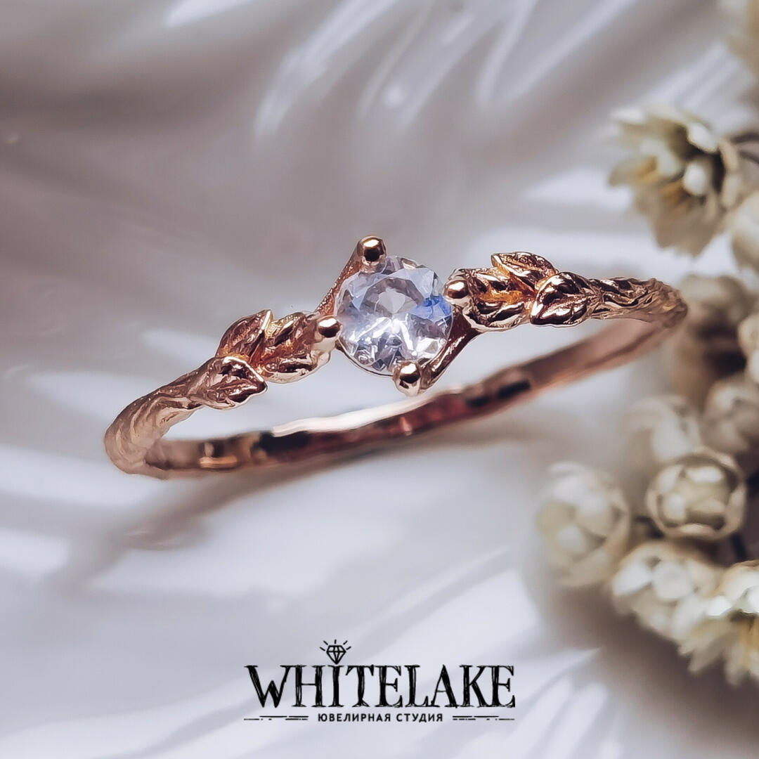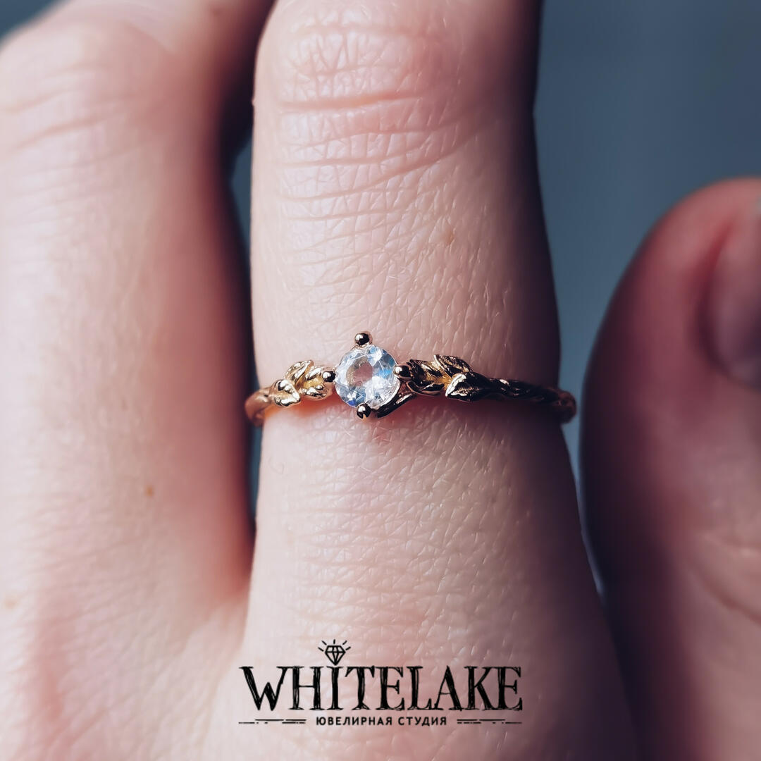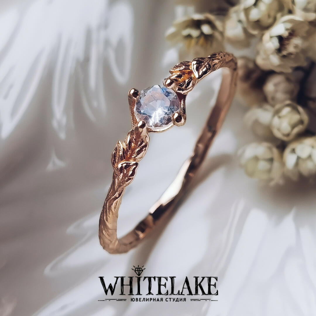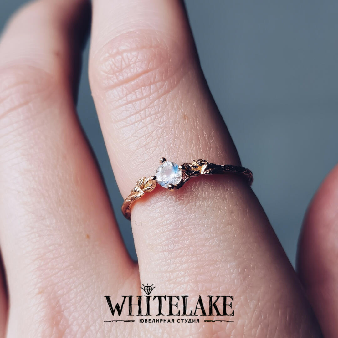 - Помолвочное кольцо из красного золота с лунным камнем «Веточка»