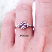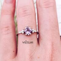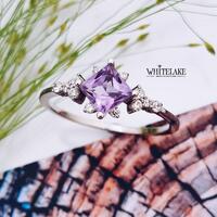 - Помолвочное кольцо с аметистом огранки принцесса и бриллиантами