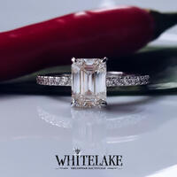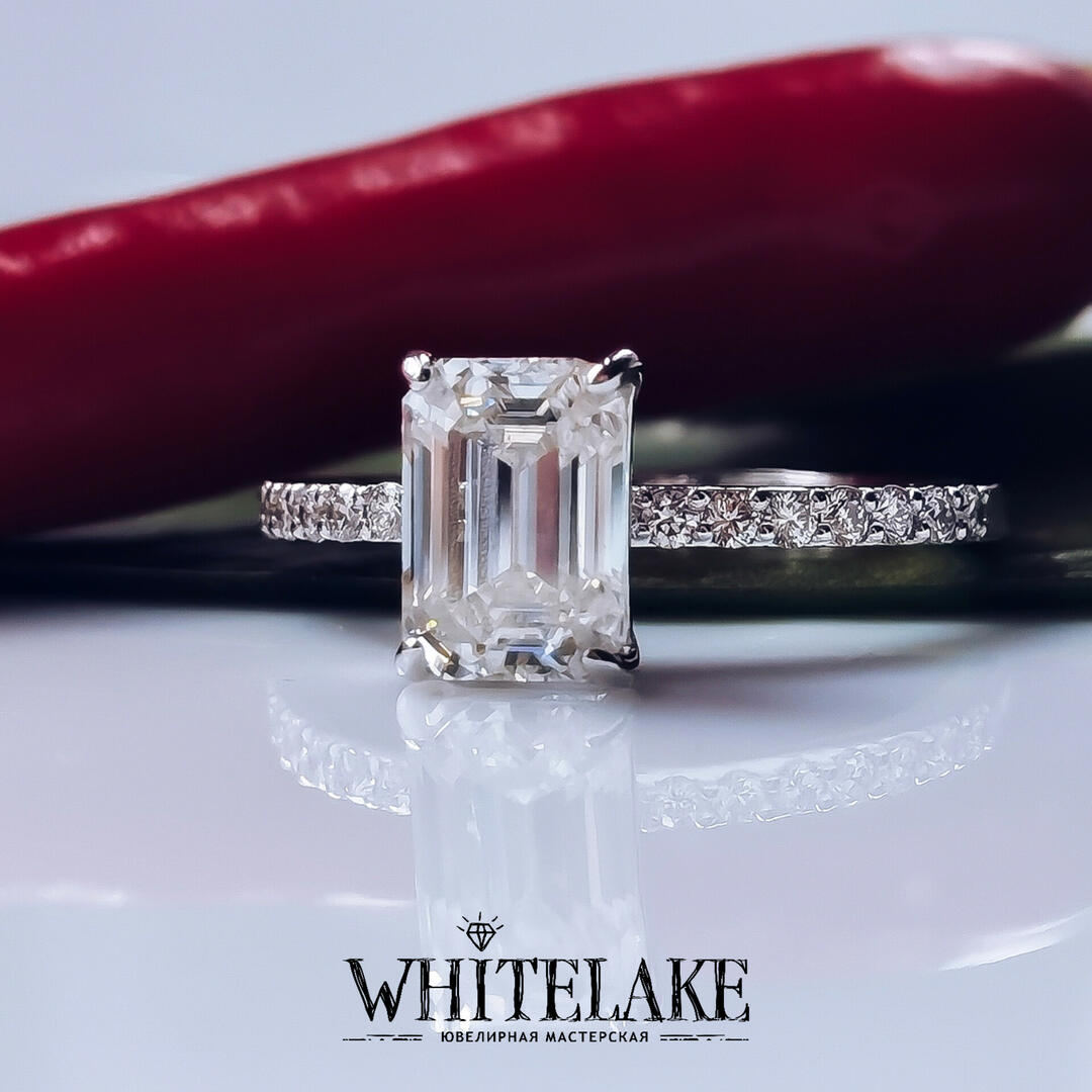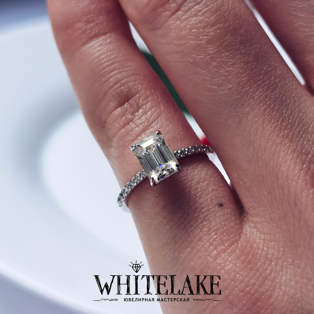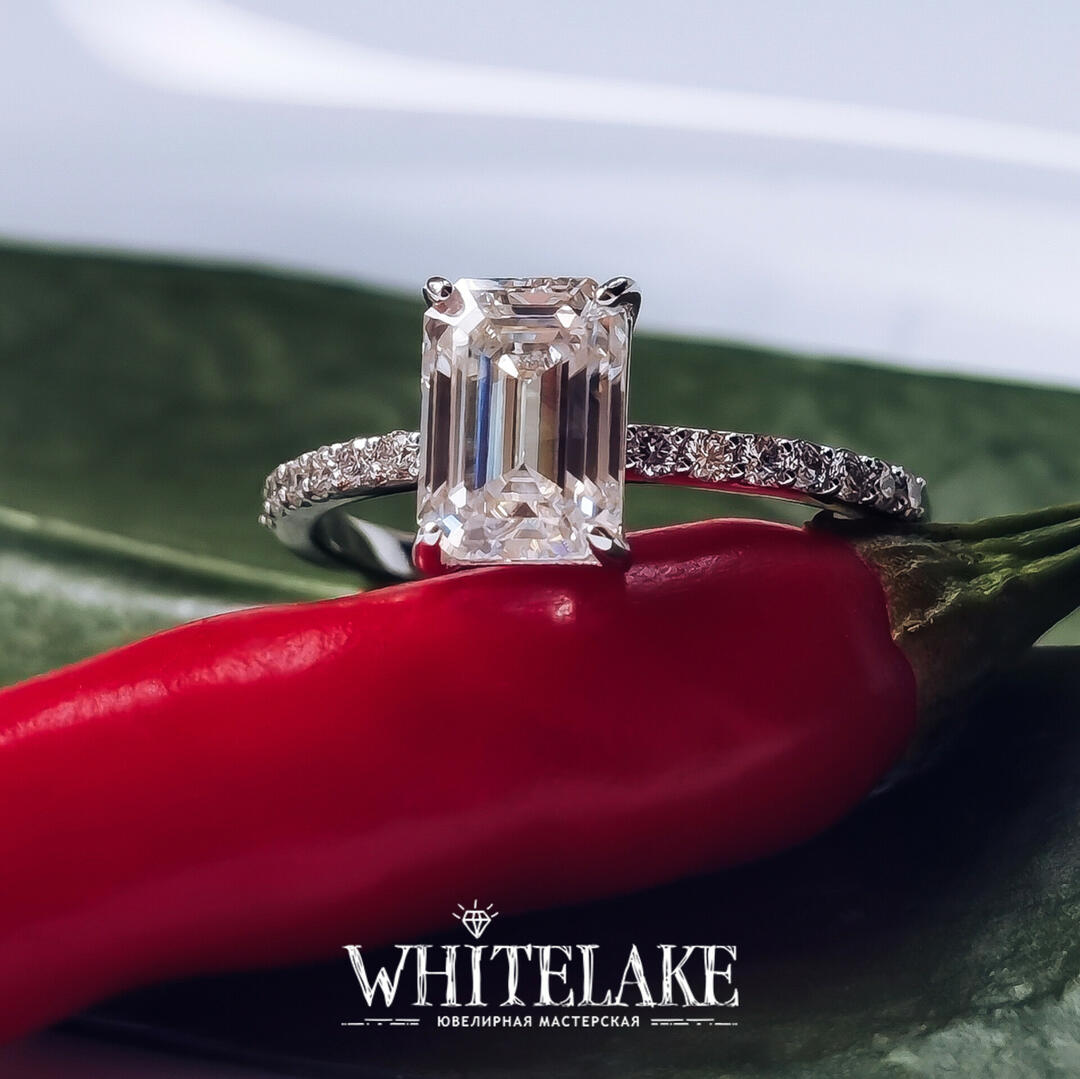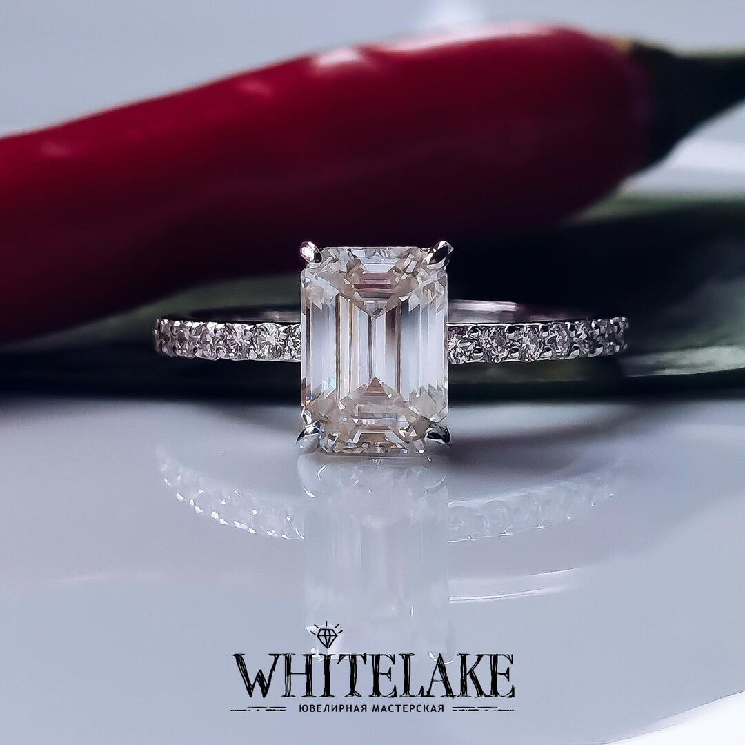Помолвочное кольцо с фианитом огранки багет и бриллиантами