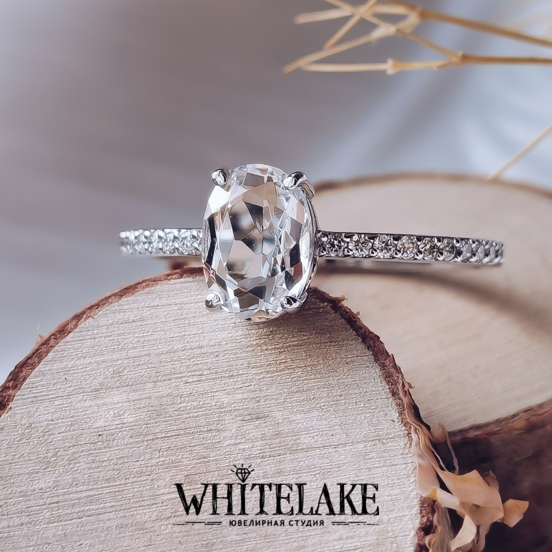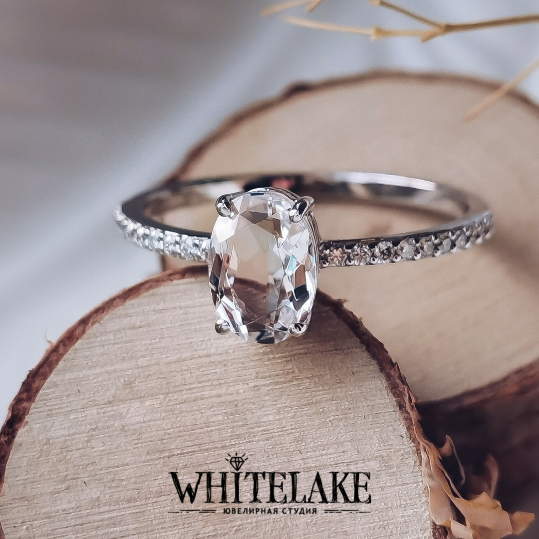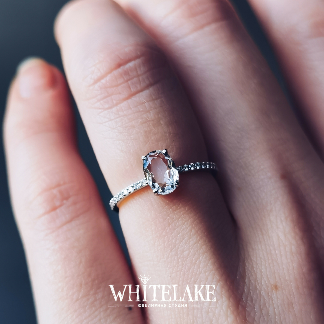- Помолвочное кольцо с горным хрусталём и дорожкой бриллиантов