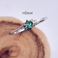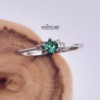 - Помолвочное кольцо с изумрудом Принцесса и бриллиантами