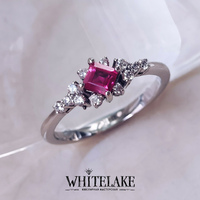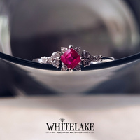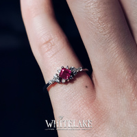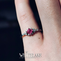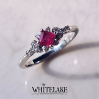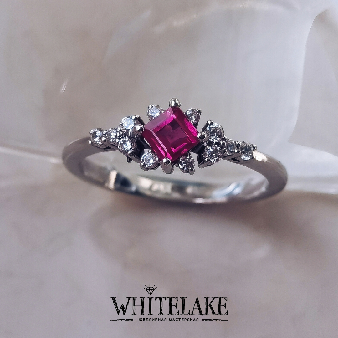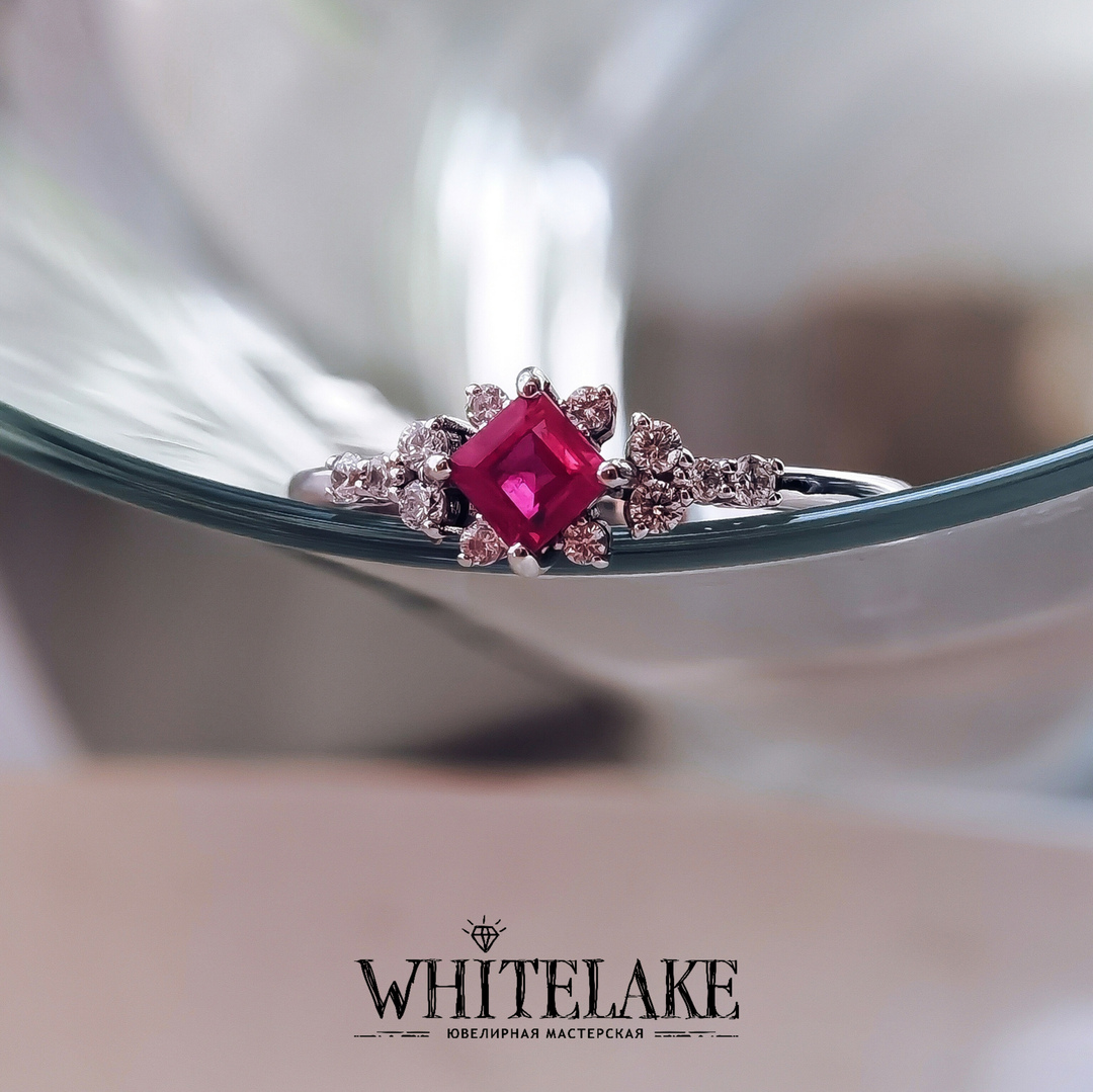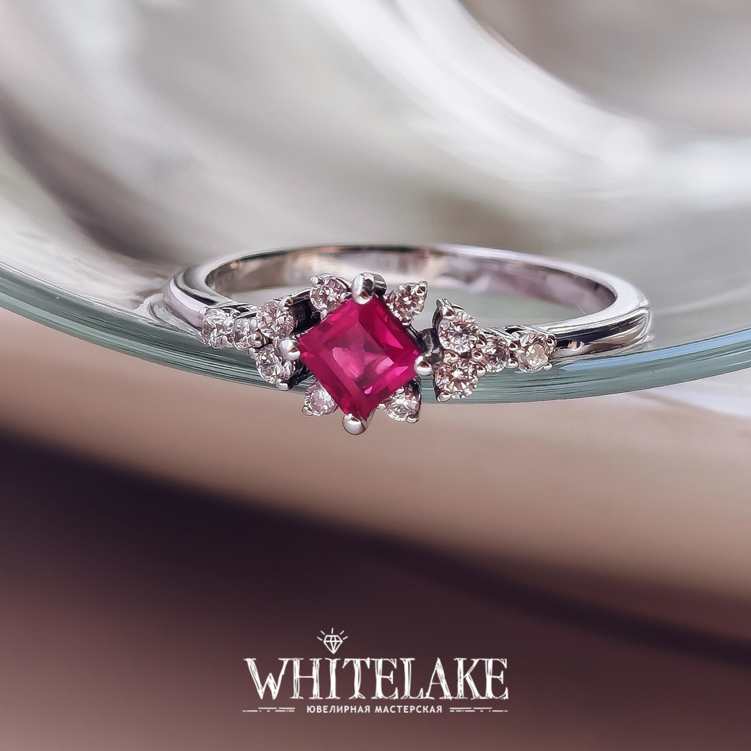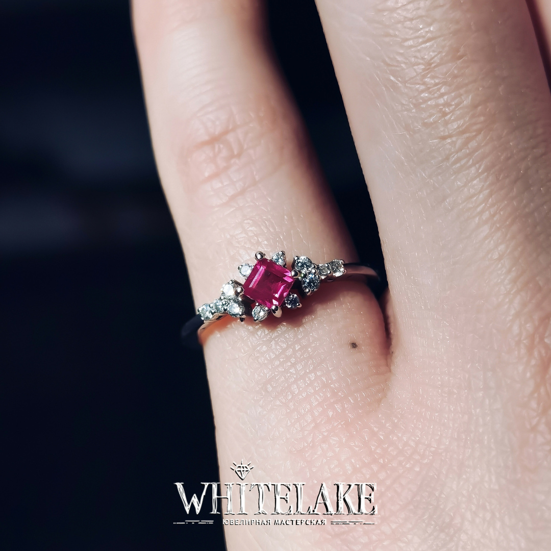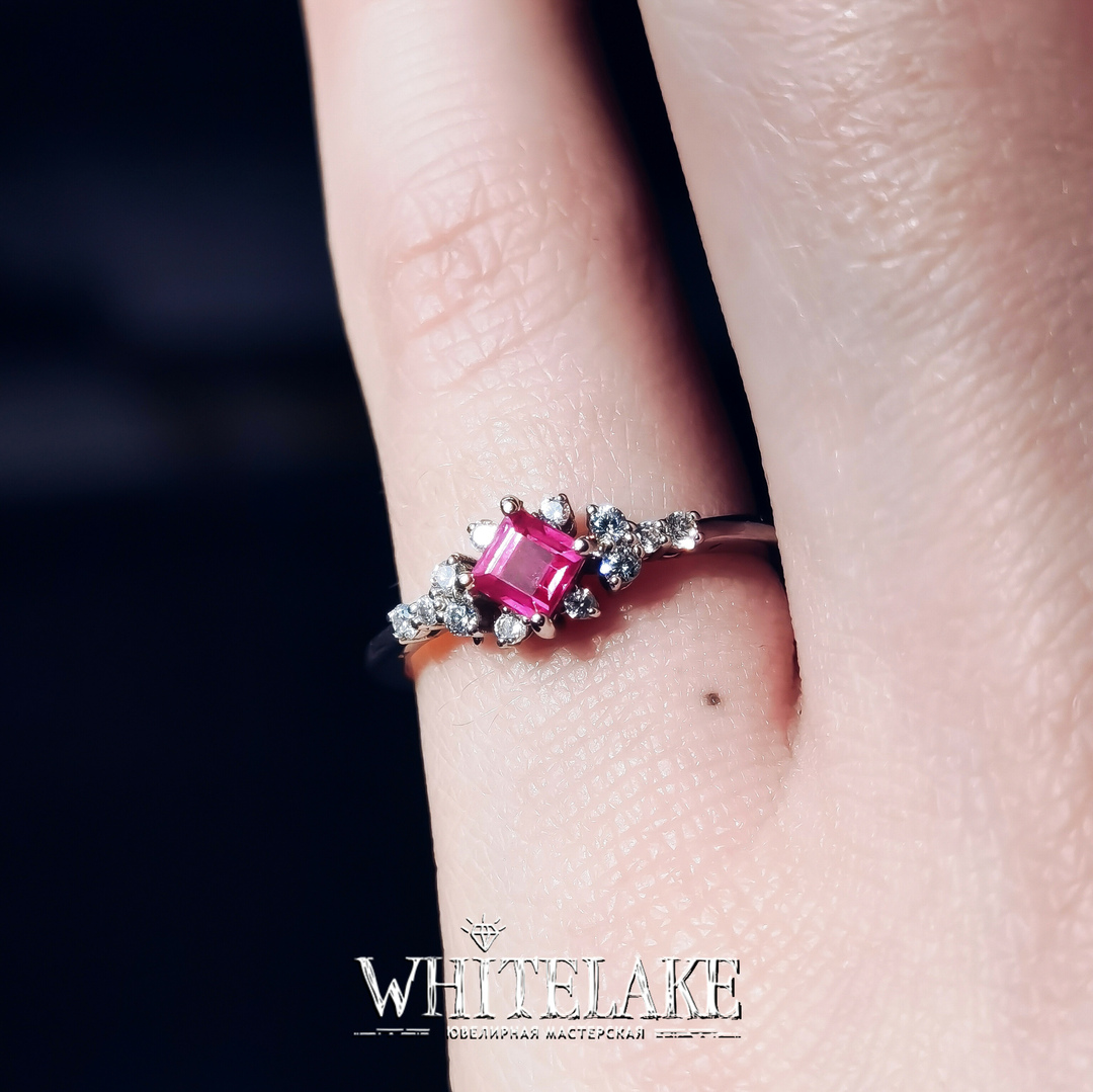 - Помолвочное кольцо с рубином огранки принцесса и бриллиантами