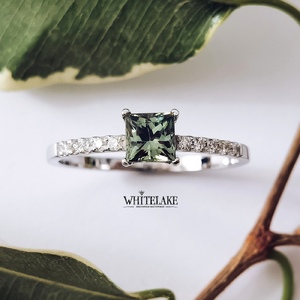 Помолвочное кольцо с зелёным сапфиром