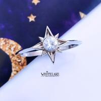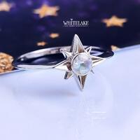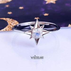 В центре же звезды – красивейший лунный камень, переливающийся нежными голубовато-серыми оттенками – еще один кусочек неба. Особенное кольцо с нестандартным дизайном, которое наверняка придется по вкусу особенной девушке.