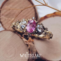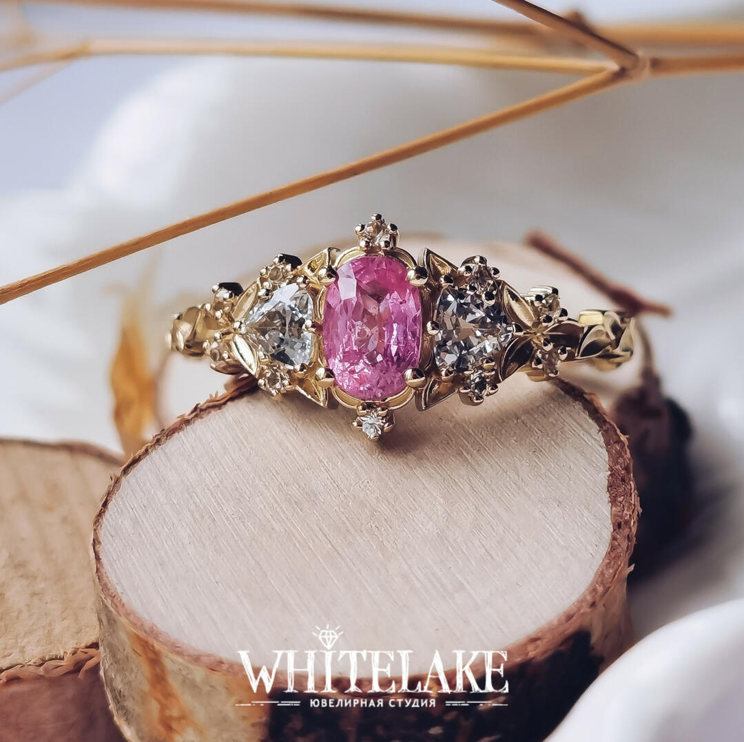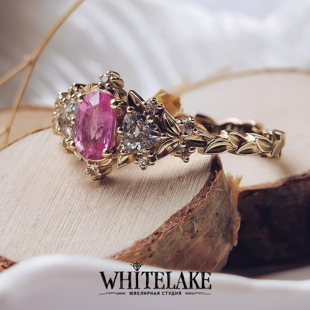 - Винтажное помолвочное кольцо с листочками и сапфирами