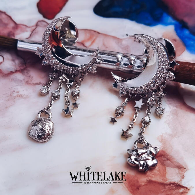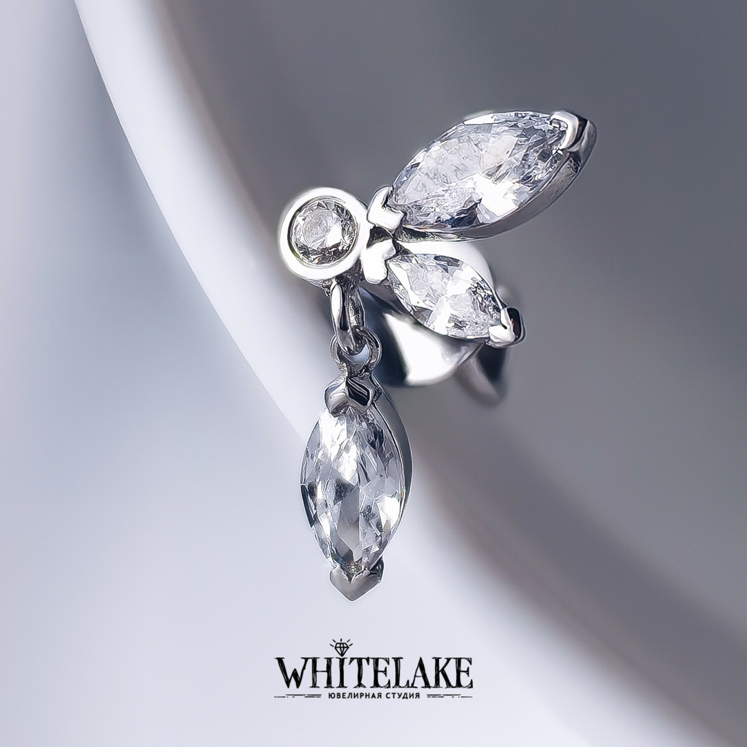 WHITELAKE Моносерьга с фианитами Маркиз Моносерьга с фианитами Маркиз на заказ. Изготовление уникальных ювелирных украшений из золота, серебра и платины с бриллиантами и другими драгоценными камнями. Заказывайте в ювелирной студии Whitelake с доставкой по России.