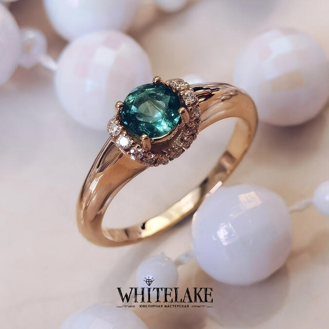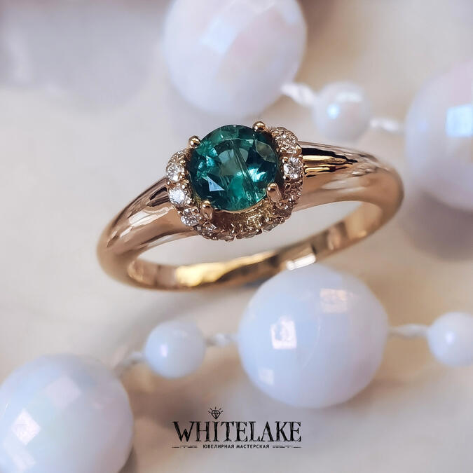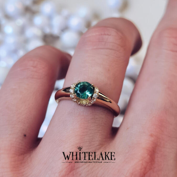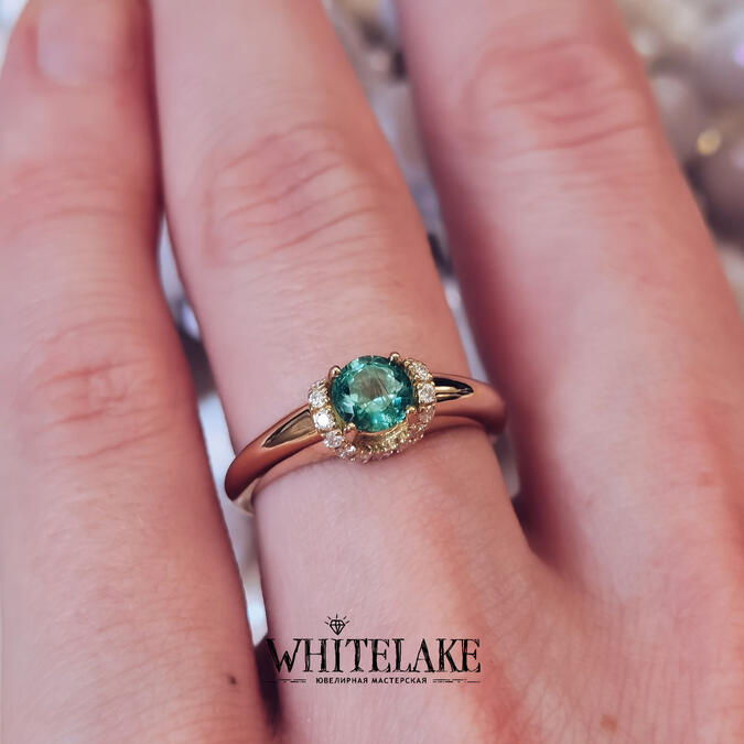 Помолвочное кольцо с зелёным сапфиром