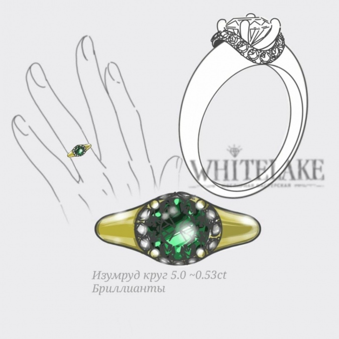 Помолвочное кольцо ручной работы Веточка с изумрудами