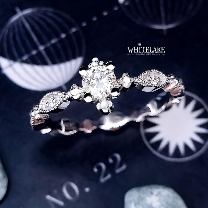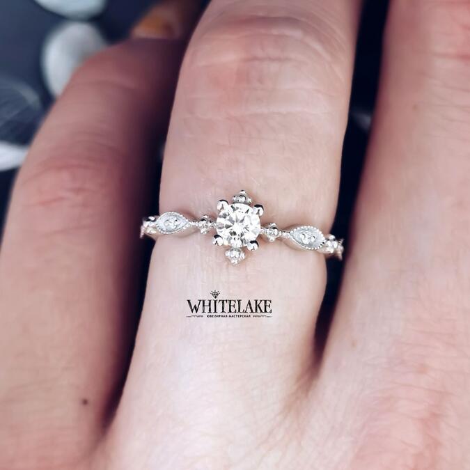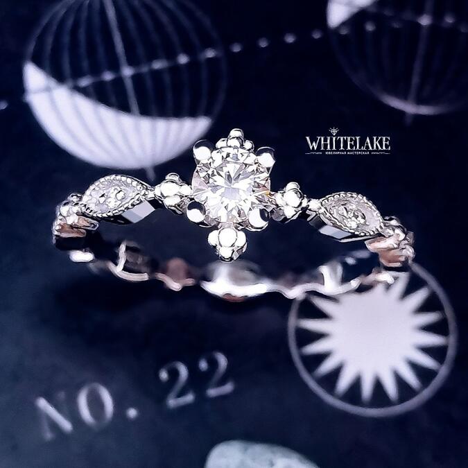 Помолвочное кольцо из белого золота с бриллиантом «Веточка»
