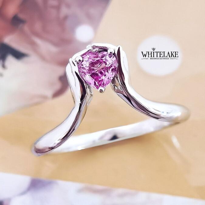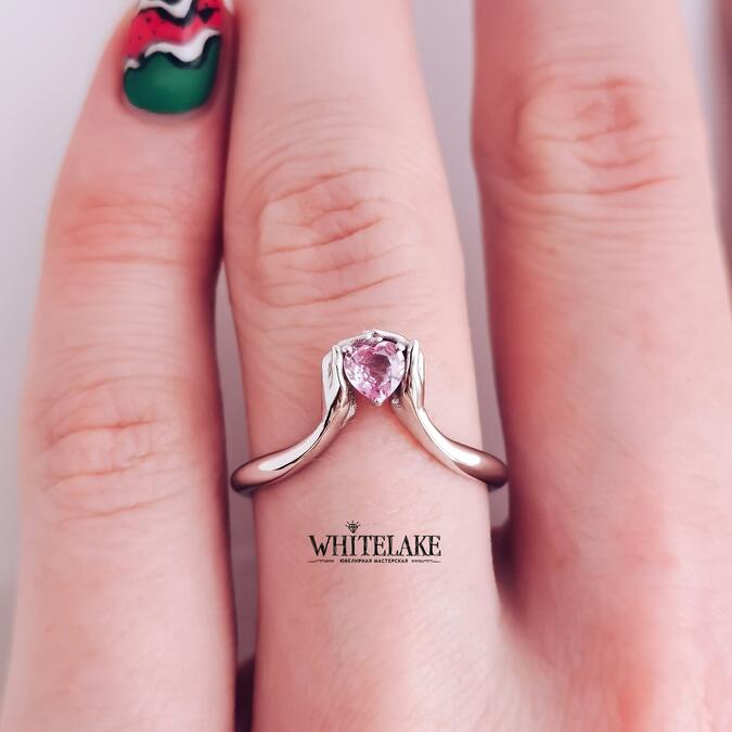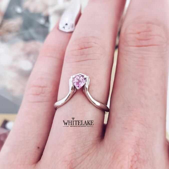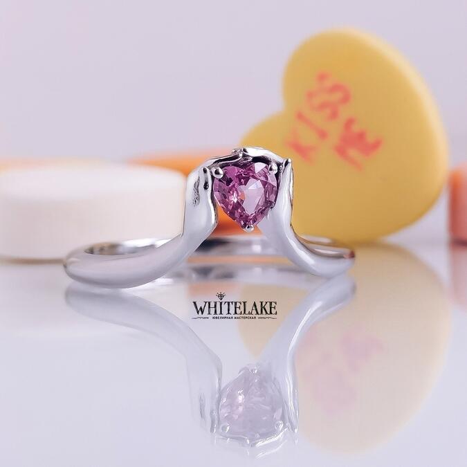 Необычное помолвочное кольцо с розовым сапфиром и бриллиантами