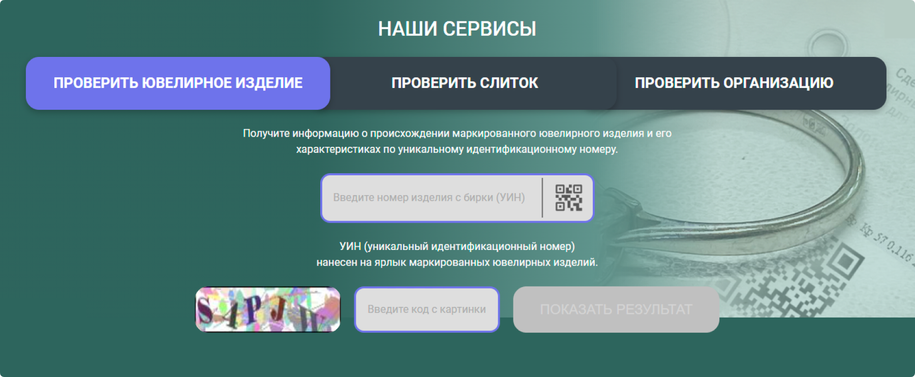 - Visit the website https://dmdk.ru and on the homepage, in the "Our Services" section, select the "Verify Jewelry" tab.